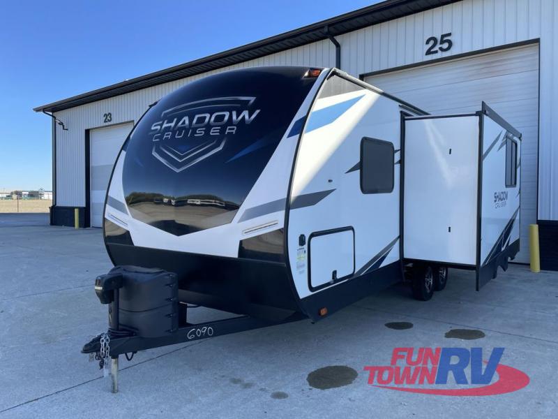 Each one of these Cruiser Shadow Cruiser travel trailers come with convenient features for you to make memories that will last a lifetime! The five sided aluminum framing holds together the Azdel composite laminated sidewalls which will keep your unit from rotting away, plus the surround seal slide system has a rain gutter to aid in keeping water out. Their strong foundation is built with a powder coated structural I-beam frames and three times the amount of required full-height cross members to provide a more solid floor foundation with more attachment points. Travel any time of year with the Extended Season package that includes radiant foil and ducted heating. There is also dual ducted 13,500 BTU A/C to keep you cool and a high BTU ducted furnace to keep you warm. The patent pending full belly pass-through storage area is LED lit so you can see all of your gear and slam latch baggage doors with magnetic latches to keep it in place while you access your items. Come find the perfect model for you today!