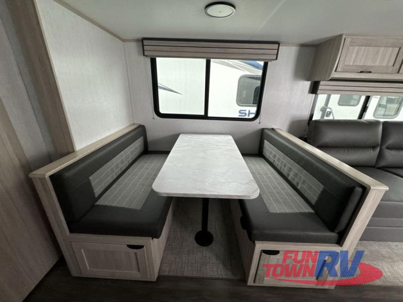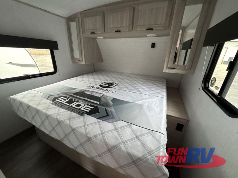 Each one of these Cruiser Shadow Cruiser travel trailers come with convenient features for you to make memories that will last a lifetime! The five sided aluminum framing holds together the Azdel composite laminated sidewalls which will keep your unit from rotting away, plus the surround seal slide system has a rain gutter to aid in keeping water out. Their strong foundation is built with a powder coated structural I-beam frames and three times the amount of required full-height cross members to provide a more solid floor foundation with more attachment points. Travel any time of year with the Extended Season package that includes radiant foil and ducted heating. There is also dual ducted 13,500 BTU A/C to keep you cool and a high BTU ducted furnace to keep you warm. The patent pending full belly pass-through storage area is LED lit so you can see all of your gear and slam latch baggage doors with magnetic latches to keep it in place while you access your items. Come find the perfect model for you today!