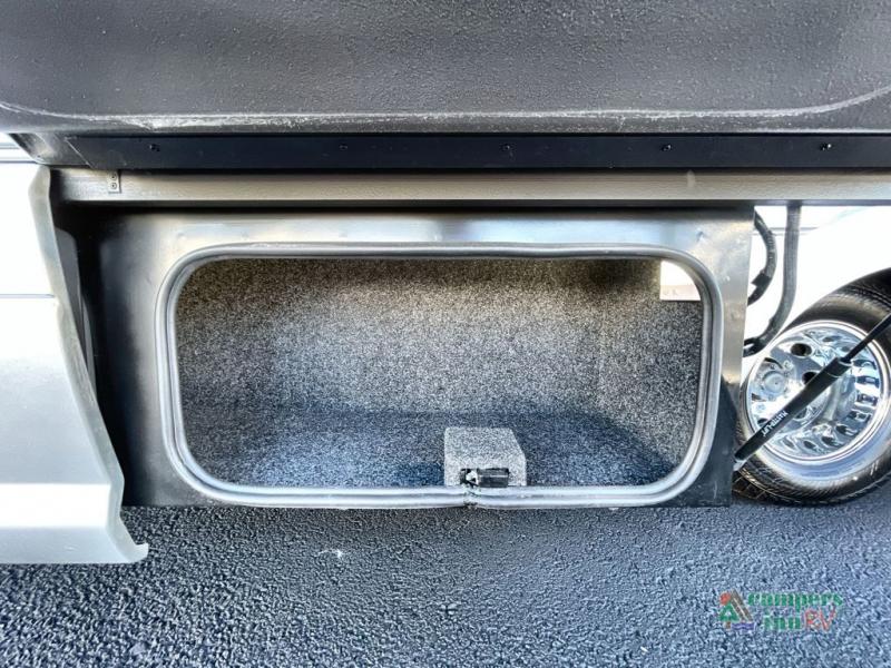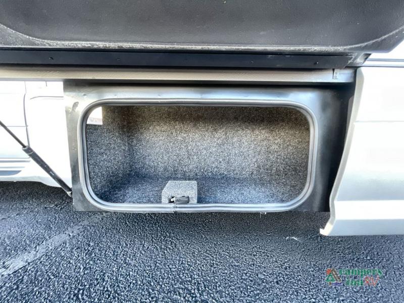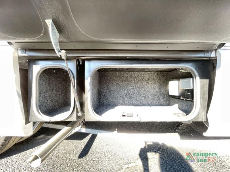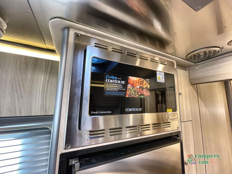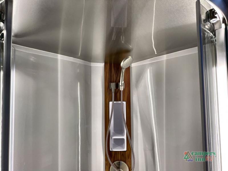 Get ready to explore, unwind and "glamp" where ever you decide! This coach brings you everything you will need, plus much much more! The power slide offers a Murphy suite that retracts and fits seamlessly with the luxury automotive body style. With a touch of a button on the multiplex control panel, you will have more floor space to relax on the reclining sofa that includes two seatbelts or pull down the Murphy bed at night. There is more seating on the captain's chairs that swivel around to face the interior, and there are two tables that adjust to different heights for your needs. The kitchen provides a two-burner gas stove and large stainless steel Kohler sink and faucet, and there is a convection microwave, a slide-out pantry and a refrigerator with a freezer a few steps away.