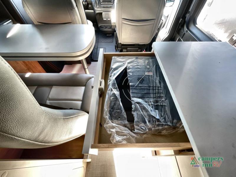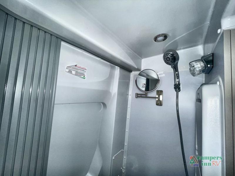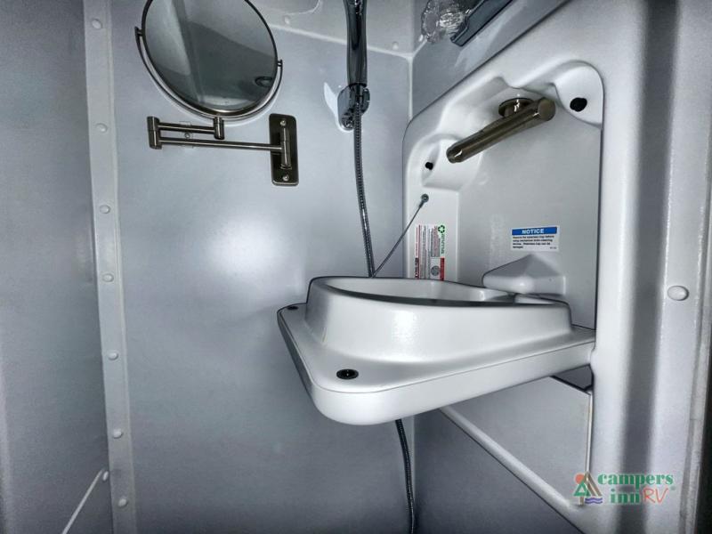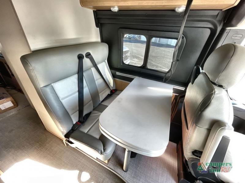 A great couples coach that would allow for easy travel to weekend sporting events, week long vacationing, or even picking up groceries across town. You will have everything at your fingertips with a flex bed system in back that can easily fold out to create a full-sized bed. The kitchen amenities make creating meals and snacks on the go easy and the wet bath is a convenience that you will also appreciate.  With the swivel driver and passenger seats up front and the flex table system with bench seating you can easily enjoy conversation or a meal with friends. The table swings out and can extend for extra space or it can be lifted out and removed completely to open up the space.