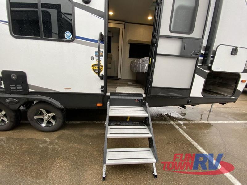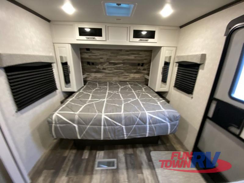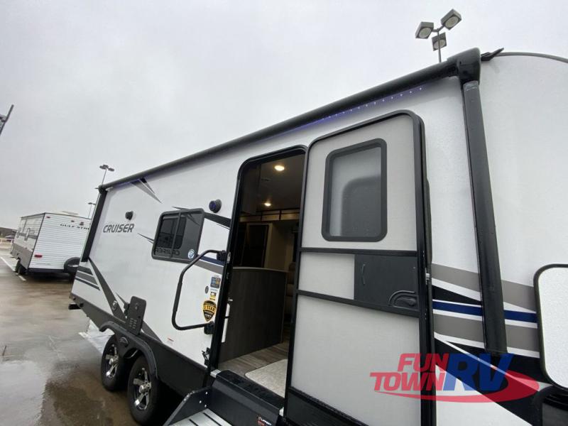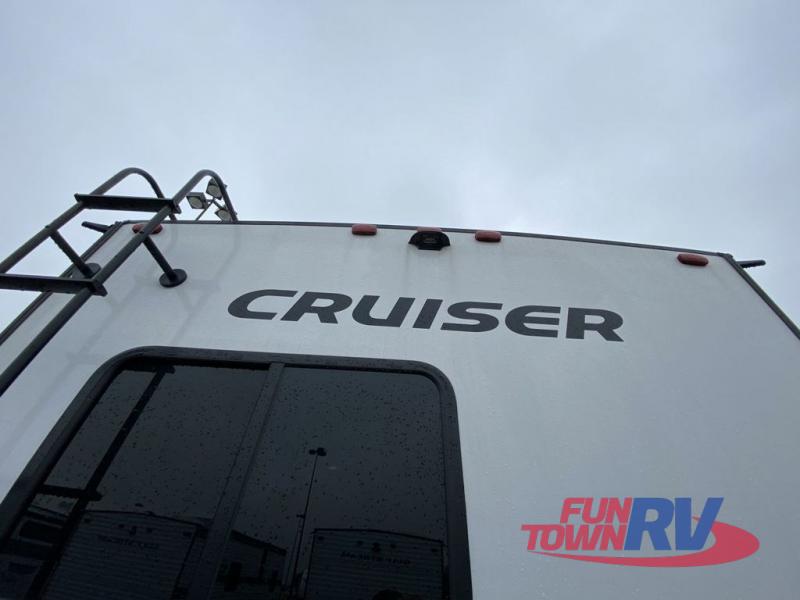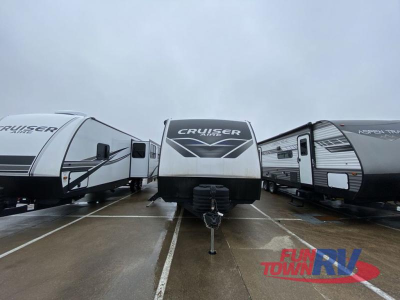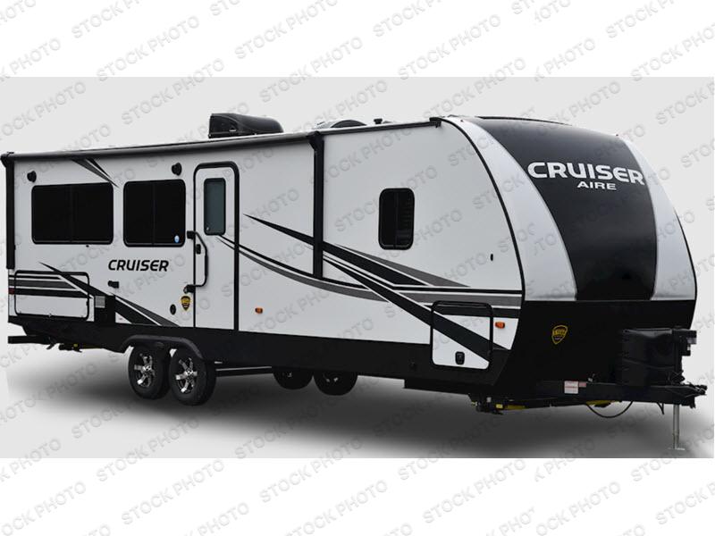 Each one of these CrossRoads RV Cruiser Aire fifth wheels and travel trailers have high end features incorporated into them! Some of these features include a Secure Stance entry step, pass-through storage with magnetic slam latch doors to keep your gear stored safely, and electric awnings with LED lights to highlight the good times at night. Their construction consists of a one piece seamless super flex roof, a five sided aluminum construction, and an aerodynamic painted front cap for an easier tow. Stay connected where ever you go with the HD digital TV antenna with Winegard WiFi prep. The interior includes hardwood cabinet doors, spacious bedroom closets, LED lighting, and many more comforts.