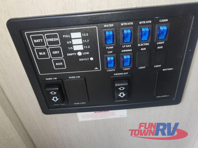 There is so much to love about this travel trailer, so come take a look! Since there are double-size bunks, a U-shaped dinette, and a queen bed in the front private bedroom, you can comfortably sleep eight happy campers! Once you've prepared dinner on the three burner range with an oven, everyone can dine around the dinette or sit outdoors under the 20' awning. There is also an outdoor kitchen with a griddle so you can cook outside on a nice day!