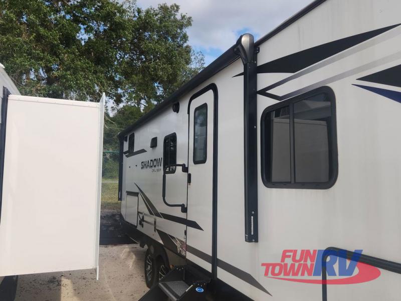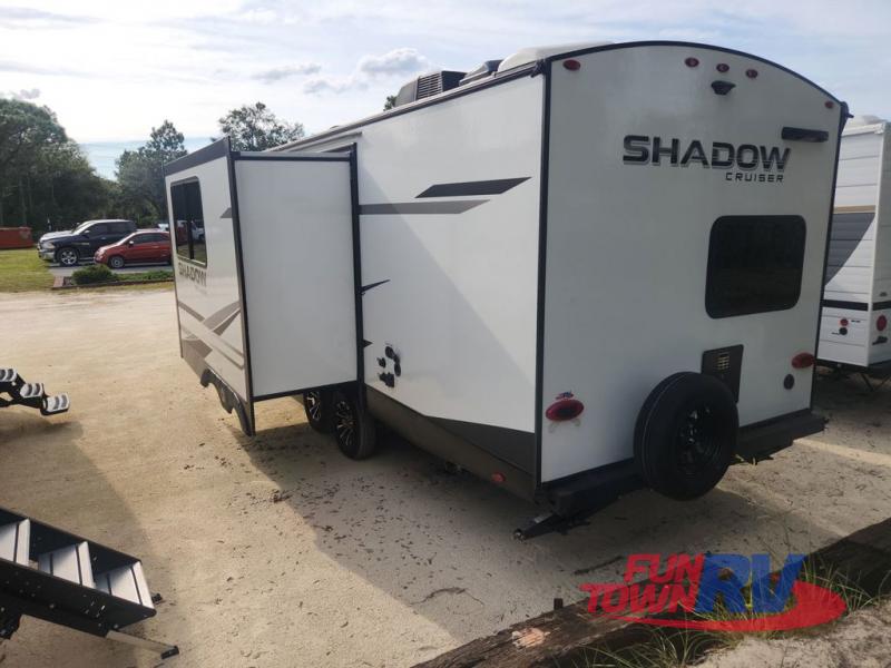 Each one of these Cruiser Shadow Cruiser travel trailers come with convenient features for you to make memories that will last a lifetime! The five sided aluminum framing holds together the Azdel composite laminated sidewalls which will keep your unit from rotting away, plus the surround seal slide system has a rain gutter to aid in keeping water out. Their strong foundation is built with a powder coated structural I-beam frames and three times the amount of required full-height cross members to provide a more solid floor foundation with more attachment points. Travel any time of year with the Extended Season package that includes an enclosed underbelly with forced heat. There is also a dual ducted 13,500 BTU A/C to keep you cool and a high BTU ducted furnace to keep you warm. There is over 40 cu. ft. of pass-through storage and slam latch baggage doors with magnetic latches to keep it in place while you access your items. Come find the perfect model for you today!