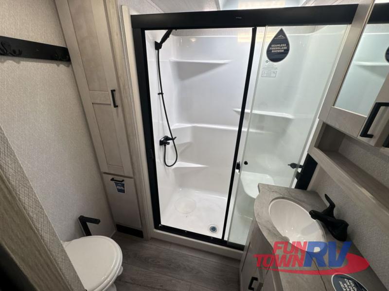With any Blackthorn mid-profile fifth wheel by EAST TO WEST, you will find luxury amenities at every turn! There is Radiant Technology Composites insulation in the roof, front cap and underbelly, plus Azdel laminated sidewalls with block foam insulation for 4-seasons camping! You will love how easy it will be to tow your fifth wheel with Dexter axles and a MORryde CRE 3000 suspension, and the electric automatic leveling system means you can set up camp in no-time! The exterior also includes an adjustable power awning with LED lights, LED motion sensor lights in the pass-through storage, and a universal all-in-one docking station to easily manage your units tank levels and functions. Head inside to find vinyl flooring, solid wood shaker style cabinet doors with hidden hinges, a seamless fiberglass shower with the industry's first locking travel latch for glass shower doors, and many more elegant features!
