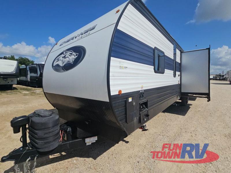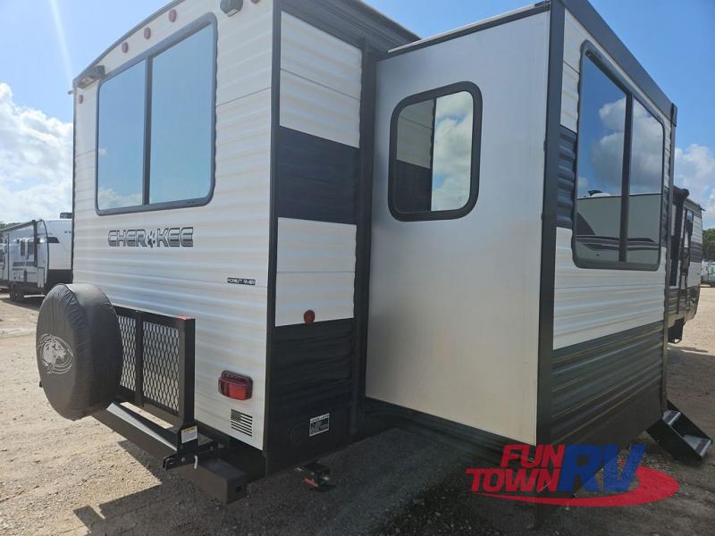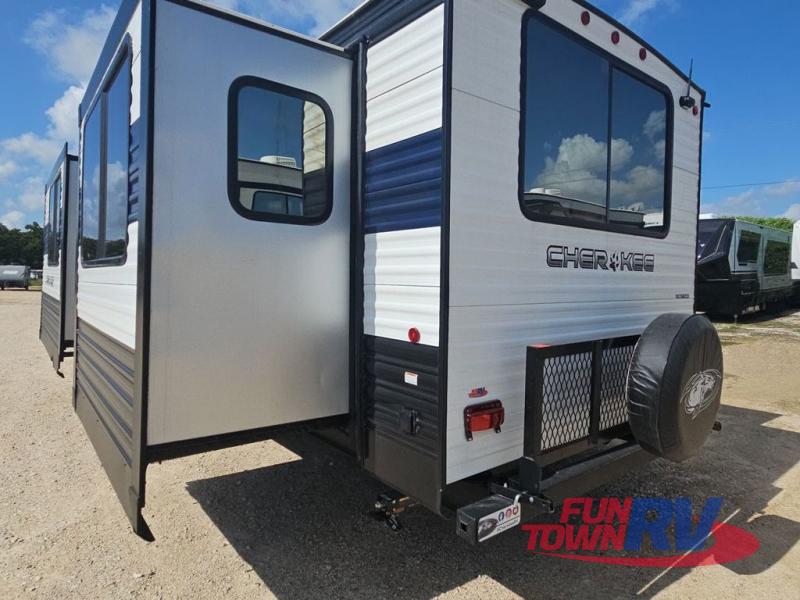If the open road is calling your name, then answer it with one of these Forest River Cherokee travel trailers or toy haulers! A seamless roofing membrane with heat reflectivity covers these units and an armored underbelly tank enclosure protects it from road debris. The Power Gear frame technology holds them together and also comes with a space saver rail design. An outside shower with hot and cold water helps to keep the dirt outside where it belongs. With the Campfire package, you will get an air fryer, an on demand tankless water heater, bedroom cabinets, and more convenient features. A few other features you will appreciate include a super kitchen, USB charging station, and light filtering sheer shading premium blackout zebra shades for added privacy. Come find your favorite model today!