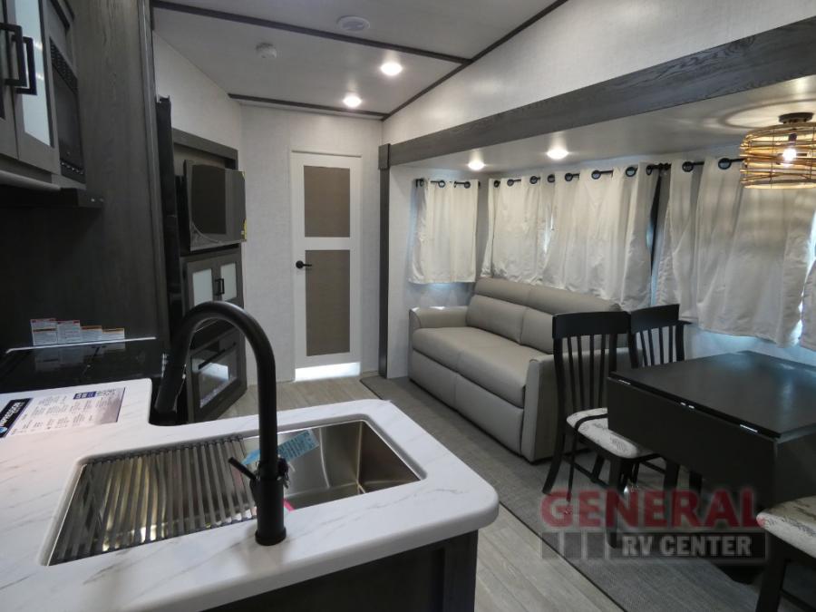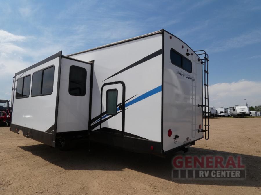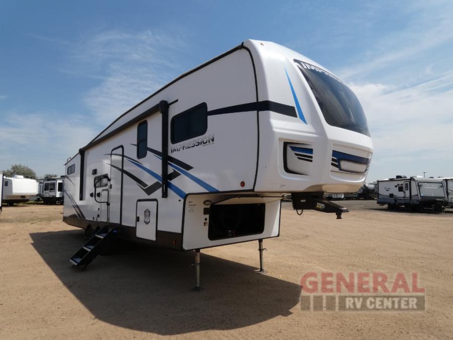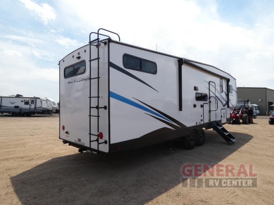 With any Impression mid-profile fifth wheel by Forest River, the focus of the design is comfort and value, built with quality craftsmanship and attention to customer's desires in each Impression! The exterior includes upgraded E-rated Goodyear Endurance tires made in the U.S.A., custom exterior graphics package, and One Touch automatic leveling system for easy setup. There is also an enclosed docking station and a gel coat fiberglass front cap with an automotive windshield with LED lights for style and beautiful views. The fully heated and enclosed AccessiBelly has removable underbelly panels and offers four seasons of travel. The interior has oversized opening windows in the living area for more natural lighting and good air flow, a stainless steel single bowl sink with high rise faucet with a pulldown sprayer to easily clean the dishes, and a porcelain foot flush toilet to mention a few comforts and conveniences.