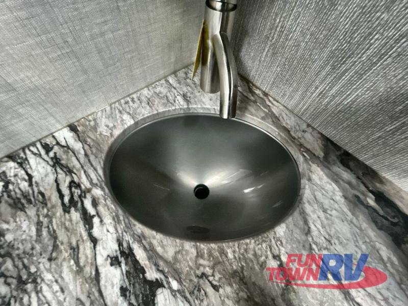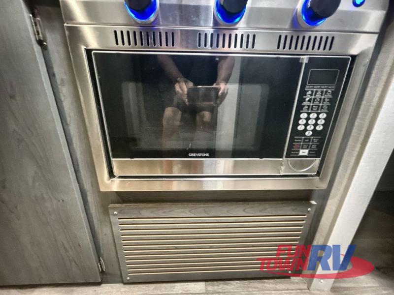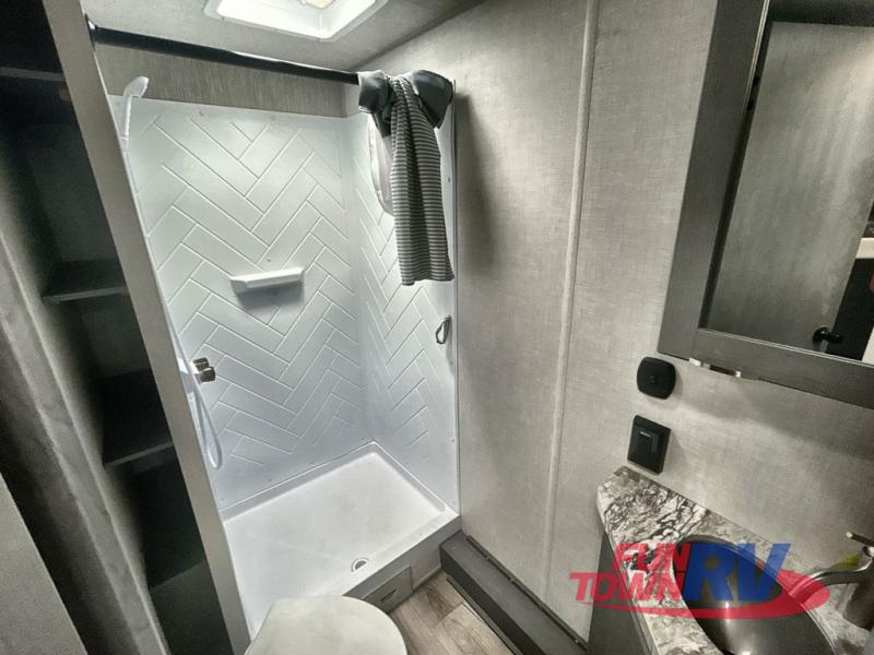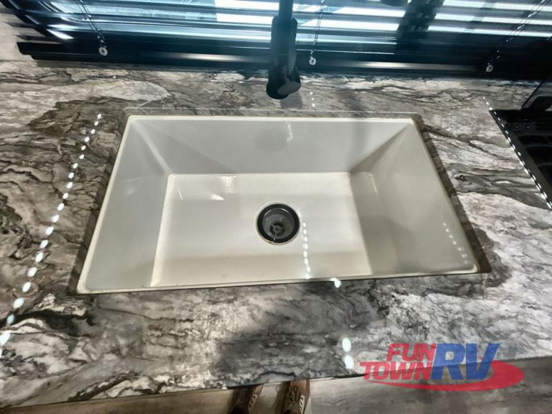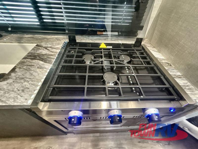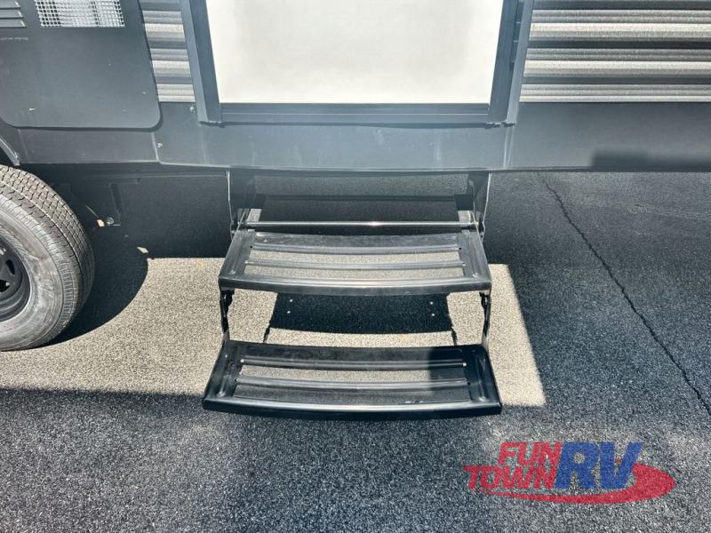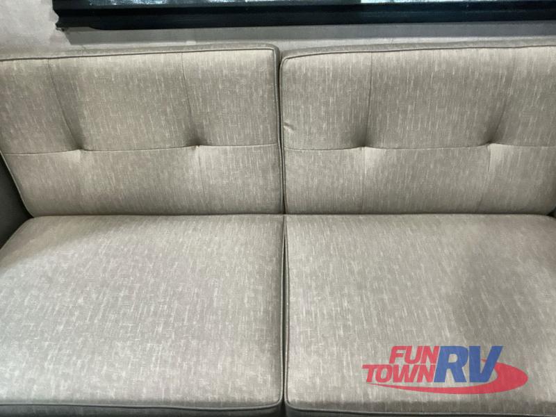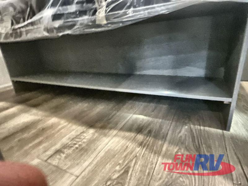 This Limited Edition model resembles the layout of 2300RBLE, but you'll enjoy added double-size bunks in the rear corner, with a full bath in the other rear corner! You'll have the front private bedroom all to yourselves with a king bed and dual wardrobes, and other guests can sleep on the L-shaped sofa with a chaise when it's not being used to relax on. The kitchen on this Ozark includes a two burner cooktop with a glass top, a microwave oven, and a panoramic window by the sink so you can have open views as you clean up. There is also a walk-in pantry and an 8 cu. ft. refrigerator that is 128% larger than normal!