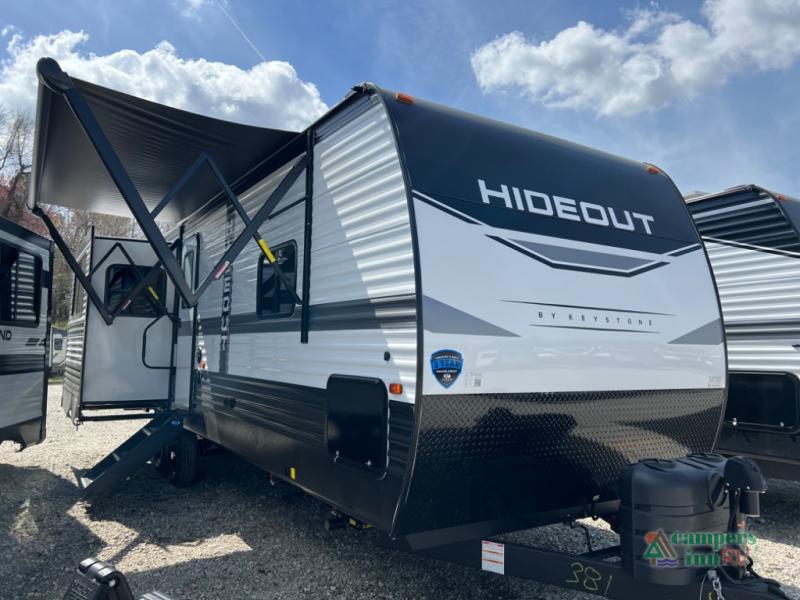 The Keystone Hideout 28RKD is designed for campers who value space, functionality, and comfort. Whether you're relaxing under the awning, prepping meals in the spacious kitchen, or sleeping soundly in the queen bed, every detail is crafted to enhance your camping experience. Don’t miss out on this perfect travel trailer for couples or small families.