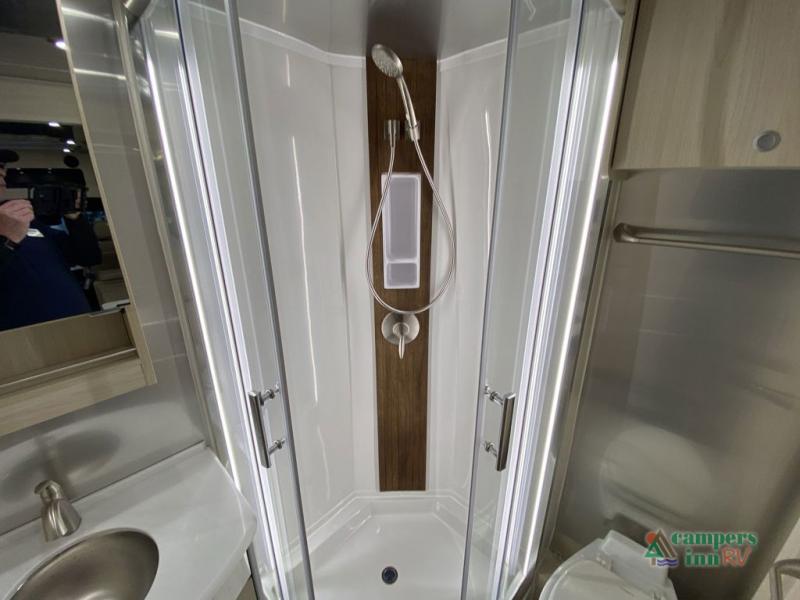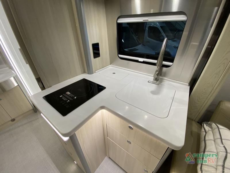 With the Atlas Class B+ diesel motorhome by Airstream, you not only get an enduring Airstream design, conveniences and luxury features, but also the proven Mercedes-Benz safety systems and performance. The coach is built with Azdel composite roof, floor, and wall material, a vacuum-bonded aluminum framed floor, radius walls, a fiberglass crowned roof for extra headroom, trimless smooth fiberglass body seams, and molded fiberglass front and rear caps. And the Mercedes-Benz 2.0L 4-cyliner high-output diesel engine will power your many excursions! The main cabin offers adjustable LED lighting, flush-mount cabinet hardware and soft close doors, a Froli ergonomic bed support system for a good night's sleep. You will enjoy Ultraleather seating, USB charging ports for your electronics, marine woven synthetic flooring, and matte finish laminate cabinetry to mention a few highlights. There are also decor options to choose from, including the optional Tommy Bahama Special Edition that will bring the island style to life!