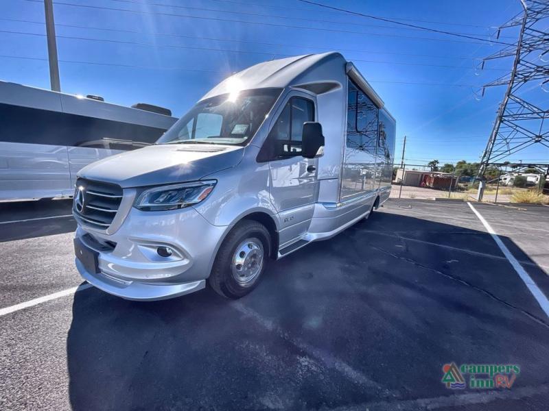 With the Atlas Class B+ diesel motorhome by Airstream, you not only get an enduring Airstream design, conveniences and luxury features, but also the proven Mercedes-Benz safety systems and performance. The coach is built with Azdel composite roof, floor, and wall material, a vacuum-bonded aluminum framed floor, radius walls, a fiberglass crowned roof for extra headroom, trimless smooth fiberglass body seams, and molded fiberglass front and rear caps. And the Mercedes-Benz 2.0L 4-cyliner high-output diesel engine will power your many excursions! The main cabin offers adjustable LED lighting, flush-mount cabinet hardware and soft close doors, a Froli ergonomic bed support system for a good night's sleep. You will enjoy Ultraleather seating, USB charging ports for your electronics, marine woven synthetic flooring, and matte finish laminate cabinetry to mention a few highlights. There are also decor options to choose from, including the optional Tommy Bahama Special Edition that will bring the island style to life!