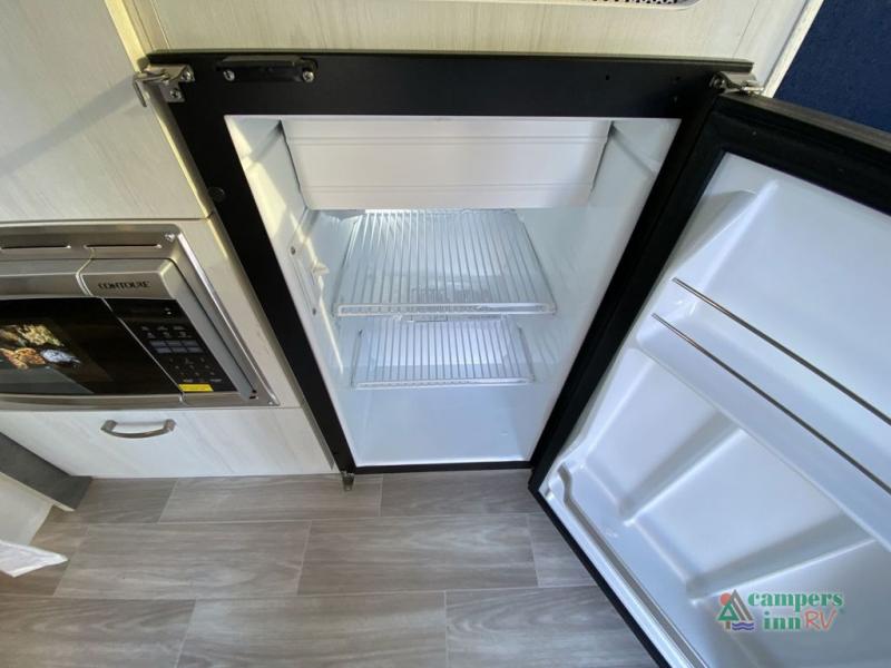 With a 16' 1" exterior length, you'll have no trouble at all getting in a out of campsites with this travel trailer. Once you've parked for the weekend, set up the manual ZipDee patio awning, then enjoy a cold drink in your camp chairs. You can head inside to prepare lunch on the two burner cooktop, or use the microwave oven. There is a stainless steel sink to clean your dishes in and a 3.1 cu. ft. 12V refrigerator for your perishables. The convenient wet bath on board allows you to stay clean throughout your adventures, and you'll find tons of storage space for your belongings. When you're ready to catch some ZZZ's, the pillow top memory foam mattress is sure to bring comfort, while your guests convert the dinette to comfortable sleeping space!