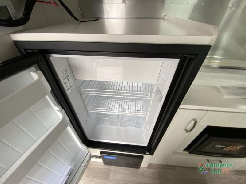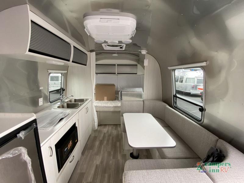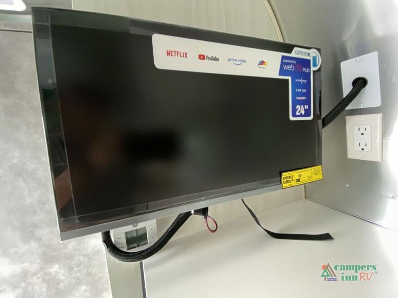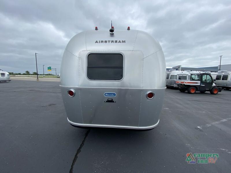 The lightweight, easy-to-maneuver Bambi travel trailer by Airstream is your ticket to outdoor fun and adventure. The panoramic front windows with blackout shades will provide natural lighting during the day, and privacy at night, and the seamless vinyl flooring will be easy to keep clean. Each model includes an efficient A/C with a heat strip, roll top overhead cabinets, and Performatex dinette cushions that are stain resistant. You will appreciate the 12V USB-A and USB-C ports to keep your devices charged, and the 24" 12V HDTV will provide entertainment when the weather isn't cooperating. The Bambi travel trailers also include a powered hitch jack with a light, roller shades, and an optional solar charging system for off-grid capabilities!
