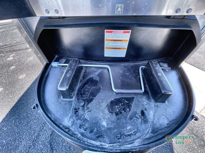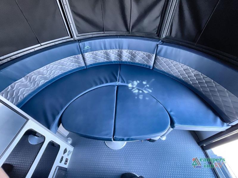 This travel trailer includes the Basecamp X Package that comes with stainless steel front stone guard protection, Goodyear off-road tires, and a 3" lift kit for added ground clearance. You can easily sleep everyone when using both the rear benches and the front U-shaped dinette. The benches provide split sleeping or a half-bed on one side and a full bed that spans the back of the trailer into an 82" x 78" area. There is storage under the cushions for the two removable tables that allow you to dine, work and relax with a place for your cellphones and such. The wet bath comes complete with a shower, sink and toilet so you can rinse off from a day outdoors, the galley kitchen gives the cook a place to make warm meals and store drinks and leftovers. This Basecamp also offers front panoramic windows, a steel entry step, a full-size spare tire, and a rear hatch allowing you to take your snowboards, skis, and paddle boards.