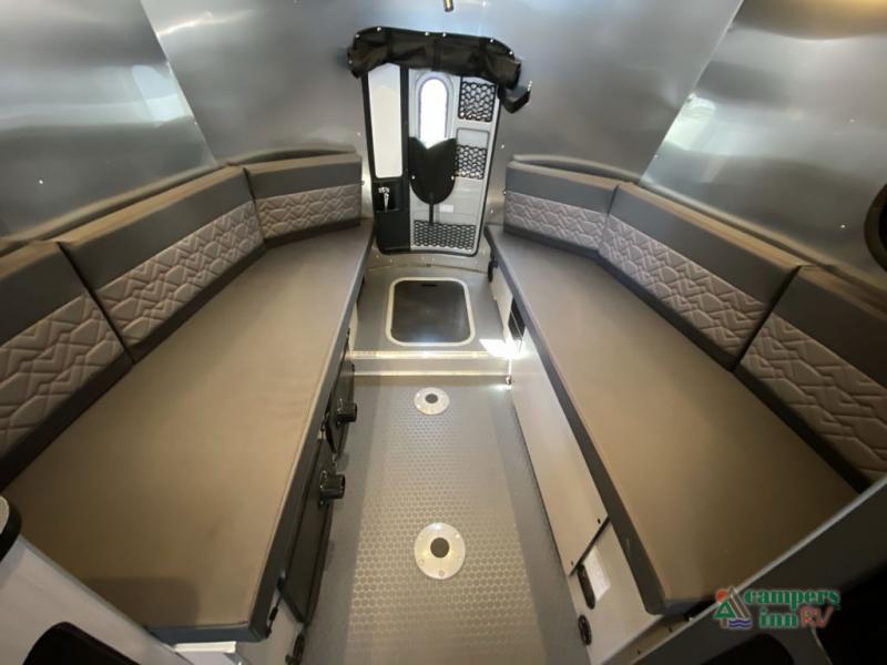 With any Basecamp travel trailer by Airstream, adventure knows no limits! The aggressive departure angle and large wheels are made specifically for handling uneven terrain, plus you can easily tow them with a variety of mid-size SUVs. The exterior includes a hand painted chassis, fluorocarbon treated UV protected aluminum, and a custom aluminum handcrafted entry door with window. You'll also find handcrafted welded extruded aluminum window frames, a torsion axle with shock absorbers, and Nev-R Adjust brakes. The interior offers Airstream Connected pre-wire, complete aluminum interior walls and ceiling, seating with Spradling stain resistant indoor/outdoor cushions and a laminate galley top, plus seamless vinyl flooring for durability and easy cleanup after all the adventures. A few features you will enjoy are the SmartPlug 30 Amp shore power, the aluminum Aircraft L-track storage system in the floor, and the optional fully enclosed tent, giving you the option to expand your outdoor living space!