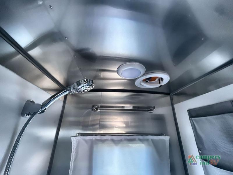 With any Basecamp travel trailer by Airstream, adventure knows no limits! The aggressive departure angle and large wheels are made specifically for handling uneven terrain, plus you can easily tow them with a variety of mid-size SUVs. The exterior includes a hand painted chassis, fluorocarbon treated UV protected aluminum, and a custom aluminum handcrafted entry door with window. You'll also find handcrafted welded extruded aluminum window frames, a torsion axle with shock absorbers, and Nev-R Adjust brakes. The interior offers Airstream Connected pre-wire, complete aluminum interior walls and ceiling, seating with Spradling stain resistant indoor/outdoor cushions and a laminate galley top, plus seamless vinyl flooring for durability and easy cleanup after all the adventures. A few features you will enjoy are the SmartPlug 30 Amp shore power, the aluminum Aircraft L-track storage system in the floor, and the optional fully enclosed tent, giving you the option to expand your outdoor living space!