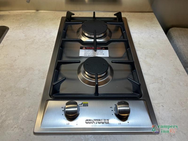 Step inside and experience a bright, modern interior with clean lines, handcrafted cabinetry, stainless steel appliances, and panoramic windows that bring the outdoors in. The rear bed offers a comfortable retreat with generous storage built underneath, while the dinette converts into an additional sleeping area for flexibility. The compact galley is equipped to prepare real meals on the road, and the wet bath delivers convenience without sacrificing valuable interior space. The Caravel’s lightweight design, smooth ride, and aerodynamic shape make towing simple and fuel-efficient, no matter what you’re driving.