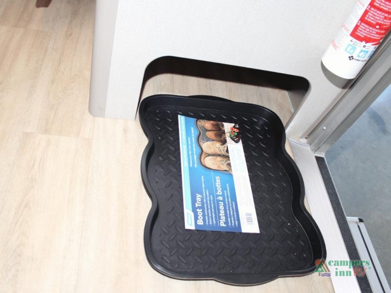 Outside, enjoy a shady setup with the Zip Dee manual awning, while matching optional window awnings help keep the interior cool and private. The rear polished bumper with bonus storage is perfect for cords, hoses, or outdoor gear, and the stainless steel stone guards protect your trailer from road debris while towing.