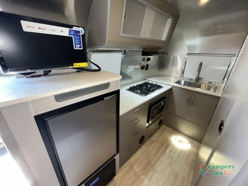 The Caravel 20FB is lightweight, aerodynamic, and incredibly stable to tow, making it ideal for midsize SUVs and trucks while still offering premium features typically found in larger Airstreams.
