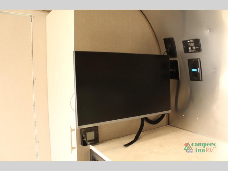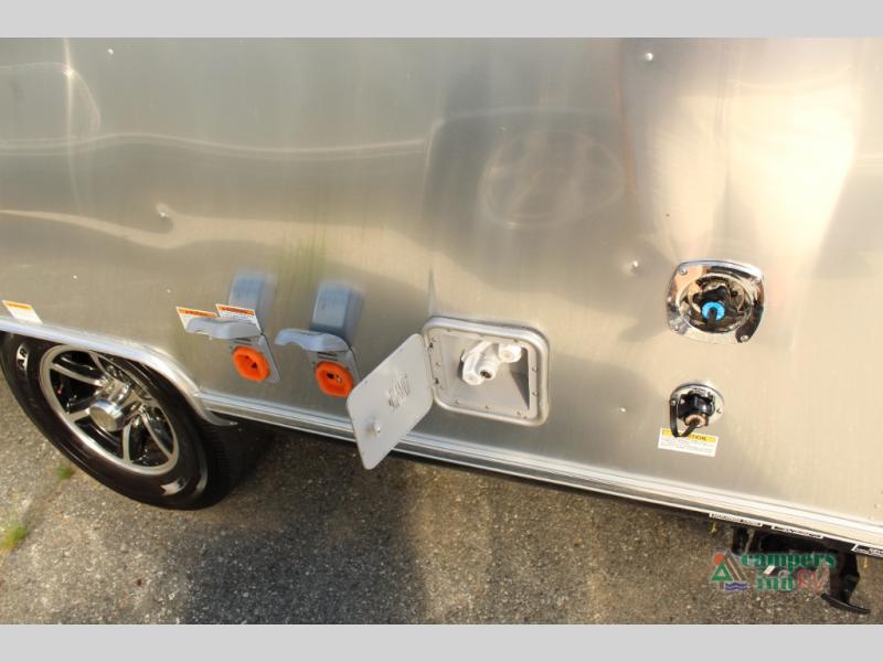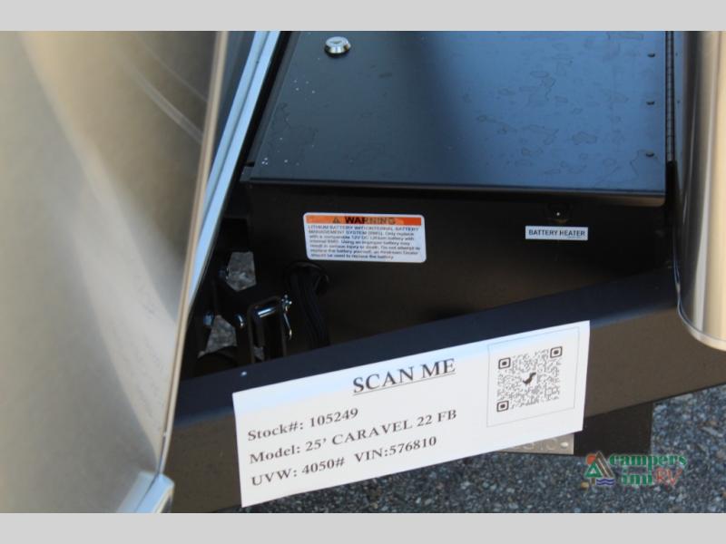 You'll always have a stylish and comfortable place to stay with the Airstream Caravel travel trailer! The manual Zip Dee patio awning can be paired with matching optional window awnings that can help keep the interior cool and private. The rear polished bumper with storage will help you keep your tools, cords, and more hidden away in a bonus storage space, and the JL Audio stereo with Bluetooth connectivity and four speakers, surround sound, and subwoofer will play your music throughout the trailer. You can stay powered while off the grid If you add the optional solar package, depending on the model you choose, and the blackout curtains will let you have privacy when you head to bed. The stainless steel front stone guard protection will prevent damage to the body of your trailer while towing, and the panoramic windows will make the interior fresh and bright with natural sunlight.