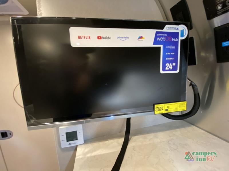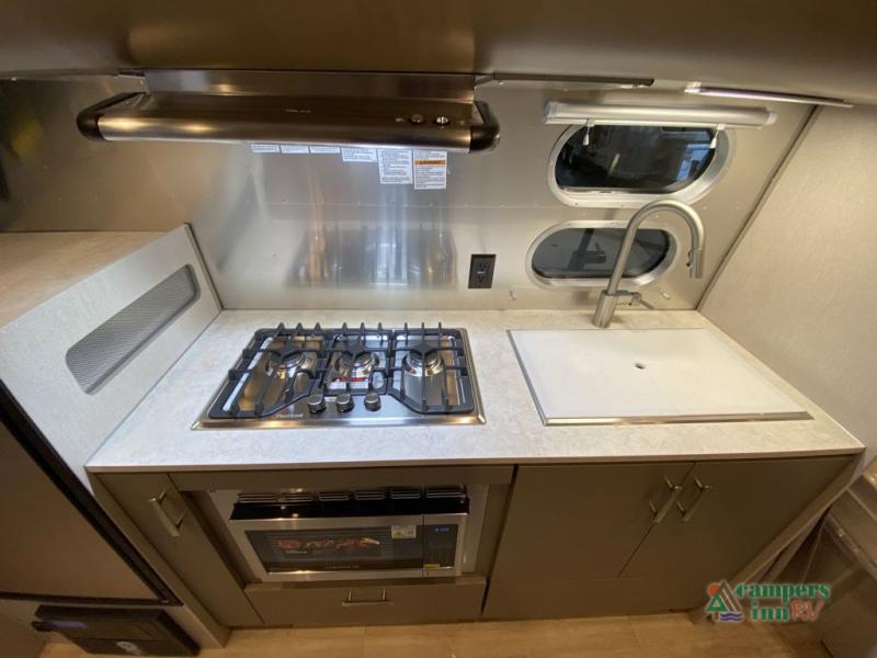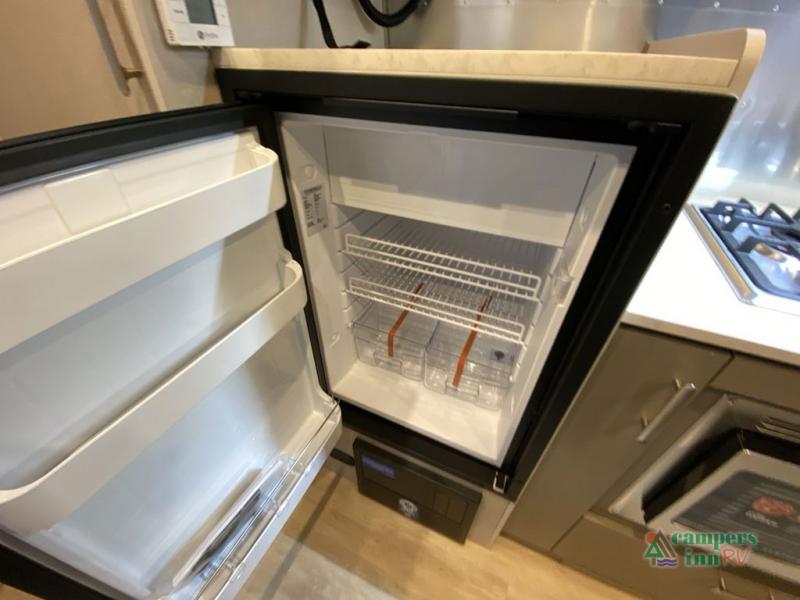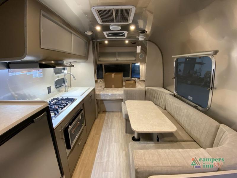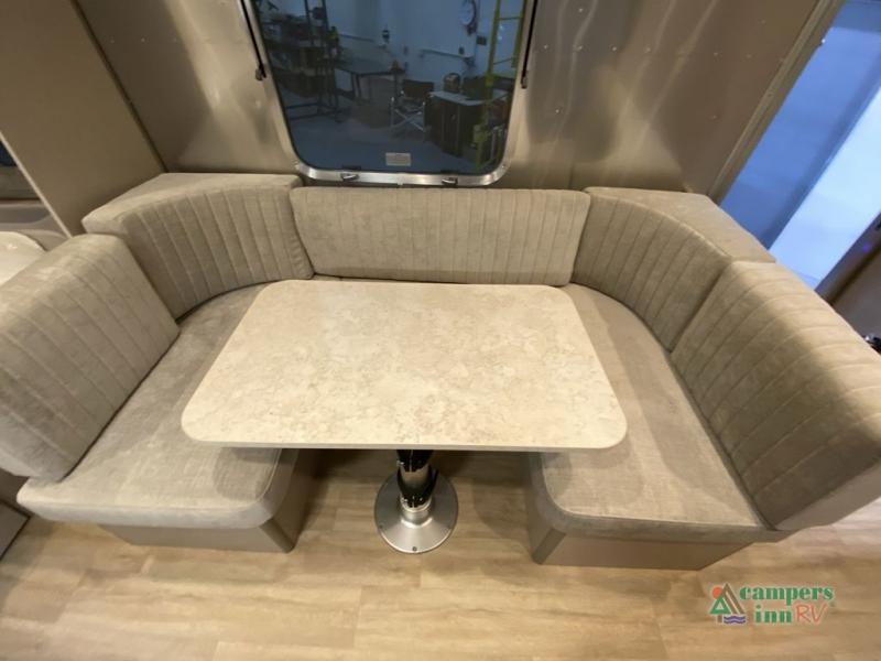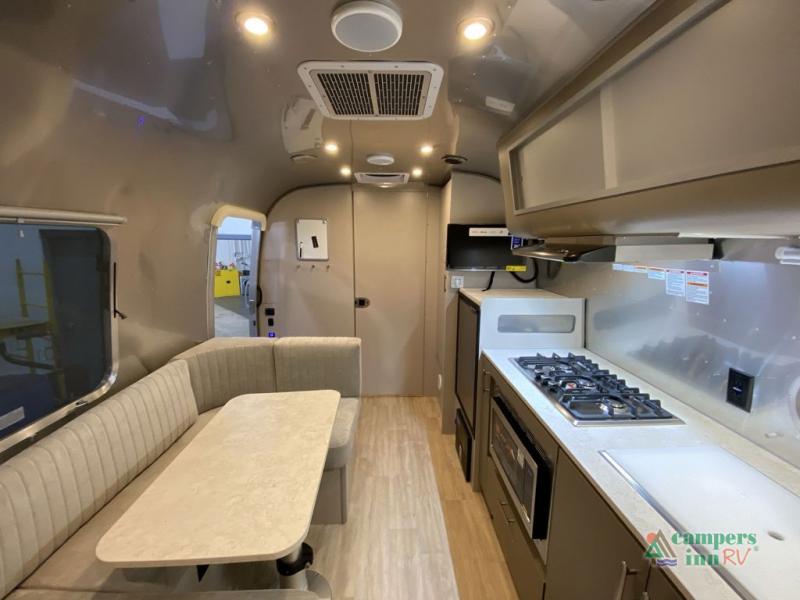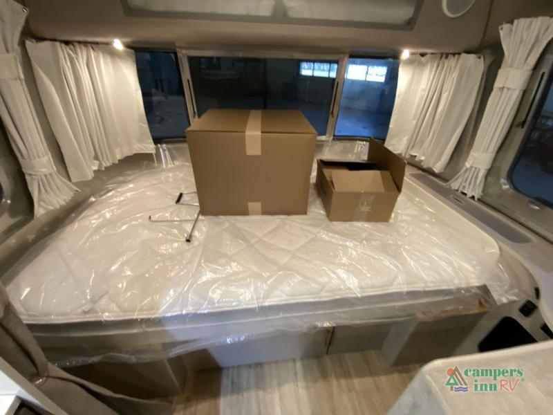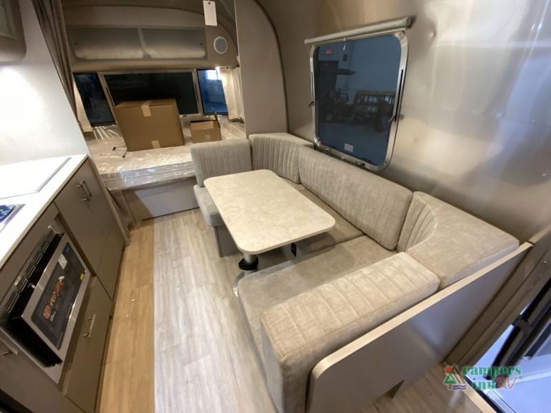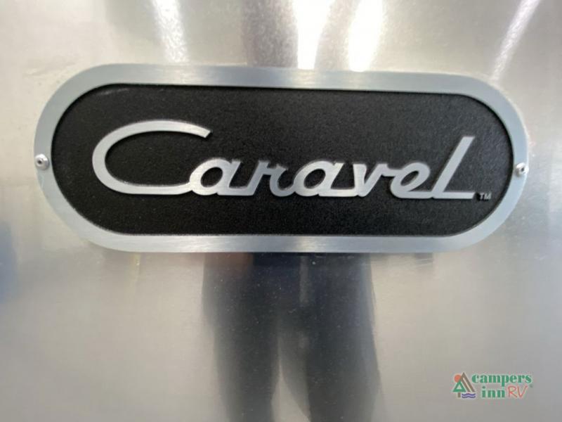 You'll always have a stylish and comfortable place to stay with the Airstream Caravel travel trailer! The manual Zip Dee patio awning can be paired with matching optional window awnings that can help keep the interior cool and private. The rear polished bumper with storage will help you keep your tools, cords, and more hidden away in a bonus storage space, and the JL Audio stereo with Bluetooth connectivity and four speakers, surround sound, and subwoofer will play your music throughout the trailer. You can stay powered while off the grid If you add the optional solar package, depending on the model you choose, and the blackout curtains will let you have privacy when you head to bed. The stainless steel front stone guard protection will prevent damage to the body of your trailer while towing, and the panoramic windows will make the interior fresh and bright with natural sunlight.