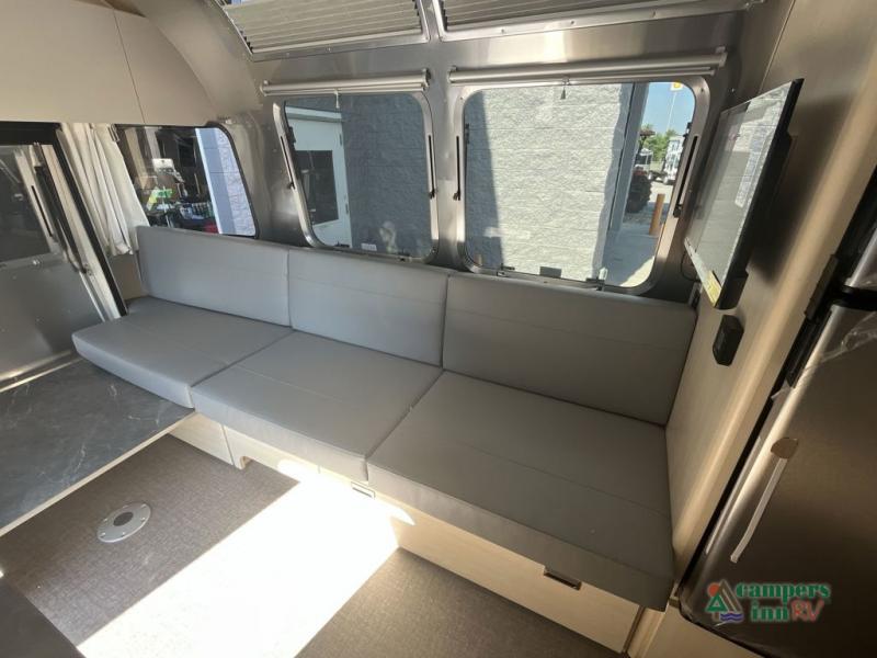 The convertible dinette and lounge provide multiple seating and sleeping options, perfect for relaxing, working remotely, dining, or hosting guests.