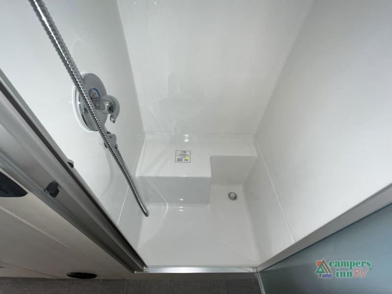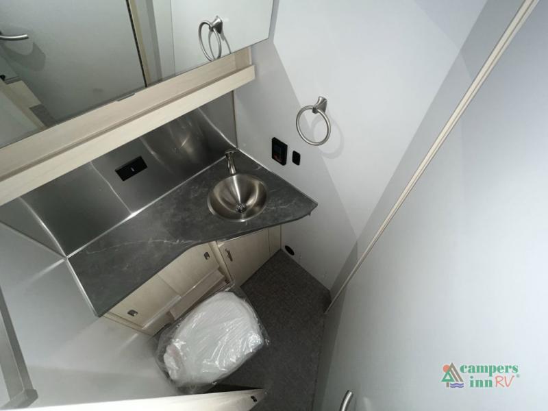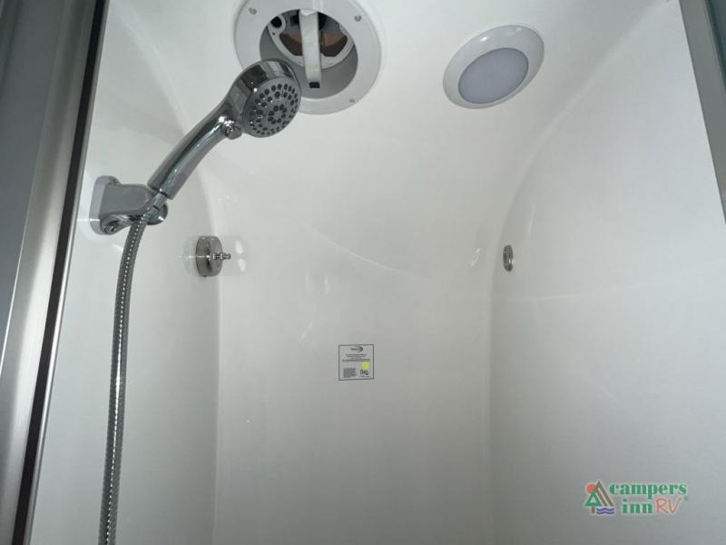 The fully equipped galley kitchen features premium appliances, ample countertop space, and clever storage solutions that make cooking on the road enjoyable and practical. In the rear, you’ll find a spacious split bathroom offering a separate shower and toilet area, giving you privacy and residential-style comfort. From front to back, the Flying Cloud 25FB Twin is thoughtfully designed to maximize space, comfort, and natural light.