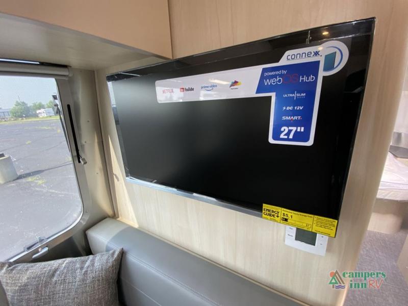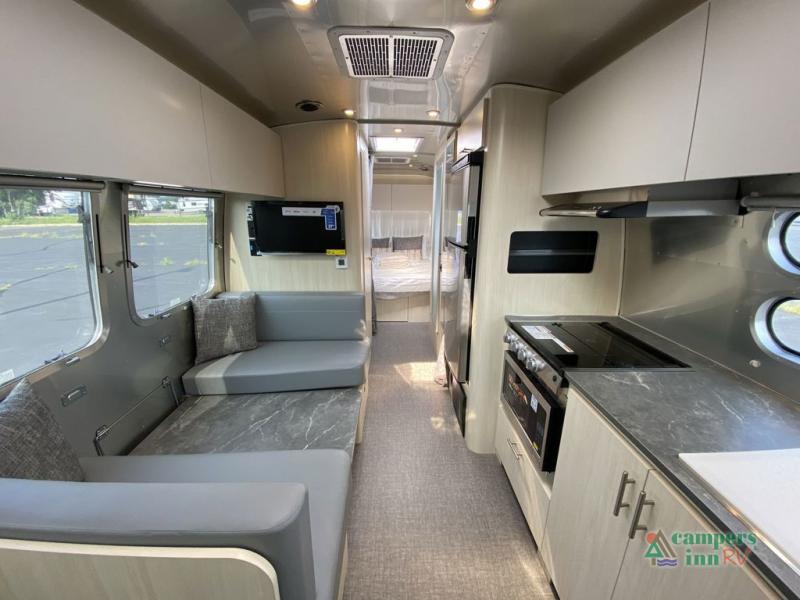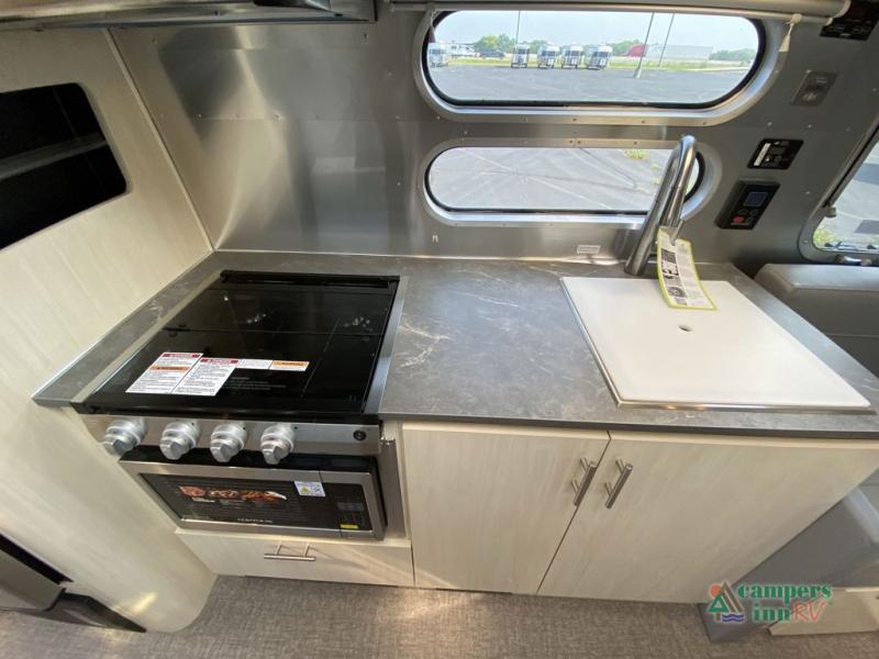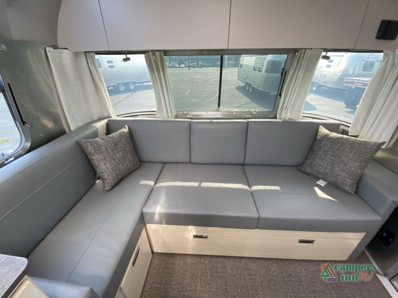 The family-friendly and popular Flying Cloud travel trailers by Airstream are built for ease of towing with a rear-view camera to make reversing and parking easier and stainless steel front stone guards to protect the lower segments from road debris. The iconic Airstream design is created outside and inside by the semi-monocoque aluminum superstructure, the temperature reducing one-piece white aluminum roof, the panoramic front windows, and the stylish aluminum wheels. The interior will have you feeling right at home with handcrafted cabinetry, plenty of storage and counter space, sleek roller blinds and blackout curtains, plus residential style faucets!