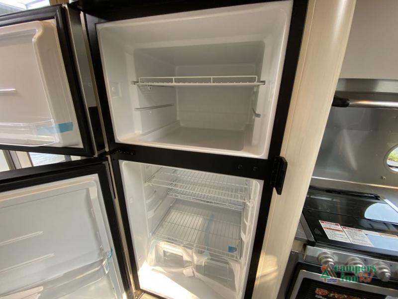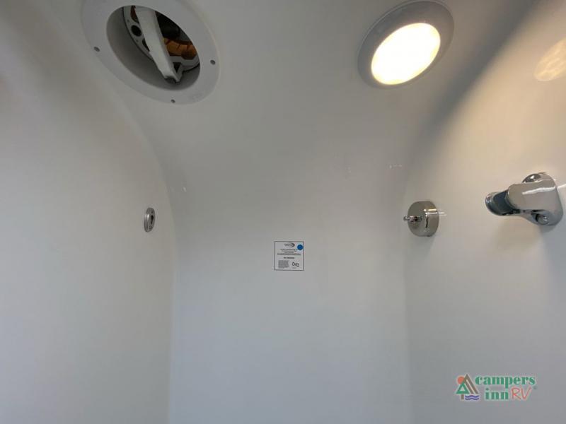 Travel with your family and friends to see new places and experience how comfortable camping can be in this trailer! Whether you are dining at the booth dinette that seats four or relaxing up front on the L-shaped sofa, you can visit while watching the TV or talking with the cook in the galley kitchen. The separated bathroom offers a toilet and vanity along one side and a shower with its own door on the other next to a closet for hanging clothes. The rear bedroom with an RV queen bed or optional twin beds offer privacy, and more windows for great views of your surroundings.