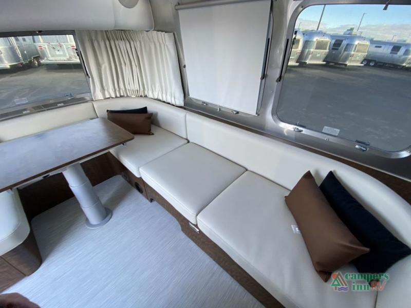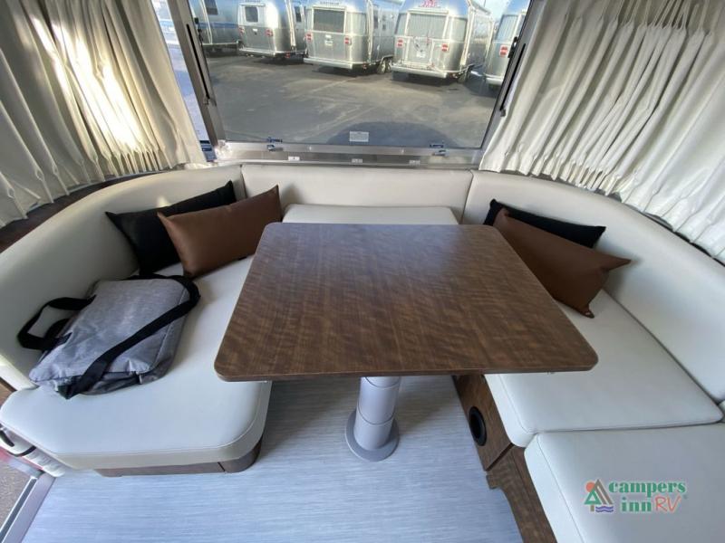 Each one of these Airstream Globetrotter travel trailers are built to last a lifetime with a structural frame and durable fabrics! European inspired and American made with a minimalist design that includes crisp, clean lines and delicate neutral colors for a sophisticated beauty with soft curves, panoramic windows, wrap-around upholstery, and backlighting. The HITCH seating upholstery has a fine woven texture, a subtle metallic tip print, and a distinctive two-tone feel, as well as durable and stain-resistant. You won't have to go far when charging your electronics thanks to the strategically placed USB and 110V outlets throughout. The QuietStream ducted A/C system can quickly cool the inside and also has a heat pump to pull ambient heat from the air. Come choose your favorite model today!