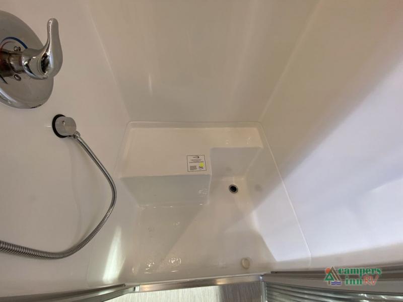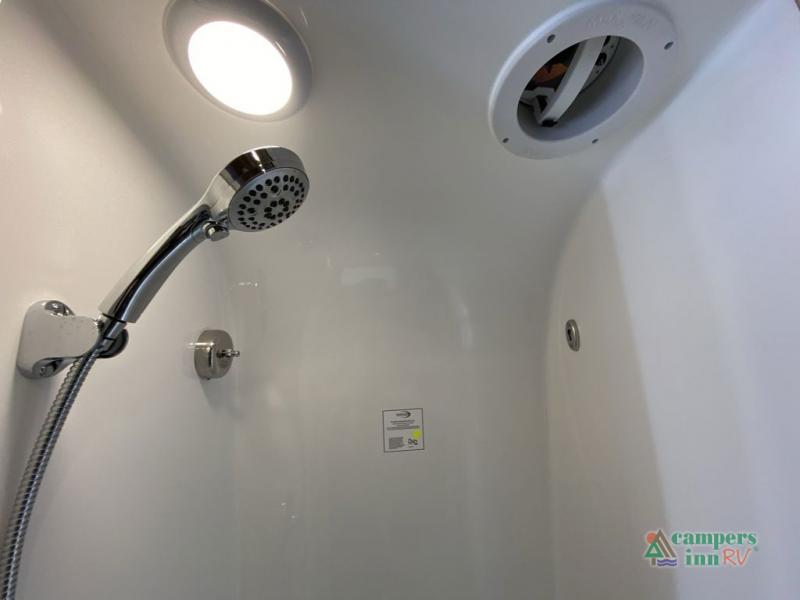 Enjoy a home away from home with this travel trailer! The L-shaped lounge provides a comfortable place to enjoy a meal, play a card game, and even transform into an extra sleeping space for a guest or two smaller guests. The ultra-modern kitchen has a stainless steel three burner cooktop, a Baraldi vent, a 6.8 cu. ft. refrigerator, and a deep stainless steel Moen sink to make clean up easier. The bright white DuPont Corian countertops help light bounce off of the aluminum walls making for a brighter atmosphere and they also have built-in multifunctional storage bins that are flush with the surface behind the sink. Up front there are twin beds with an AdaptaFlex memory foam mattress for you to enjoy a good night's rest or watch a movie with the LG LED TV. The separated bathroom allows one person to freshen up in the shower with a seat while another uses the private toilet and vanity!