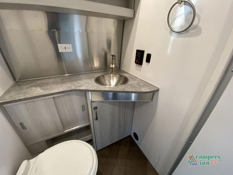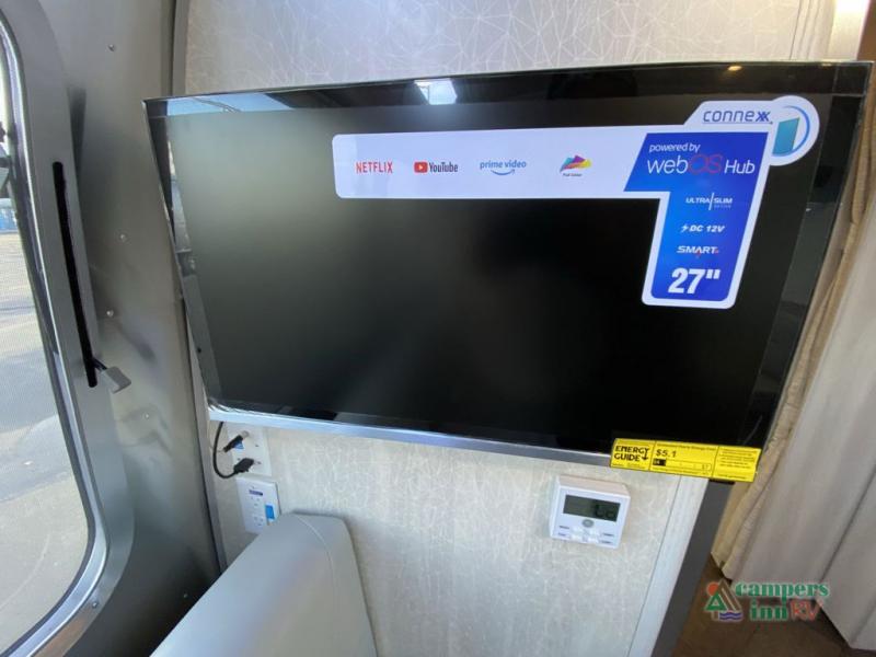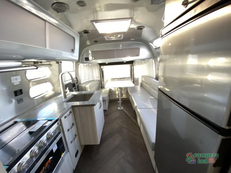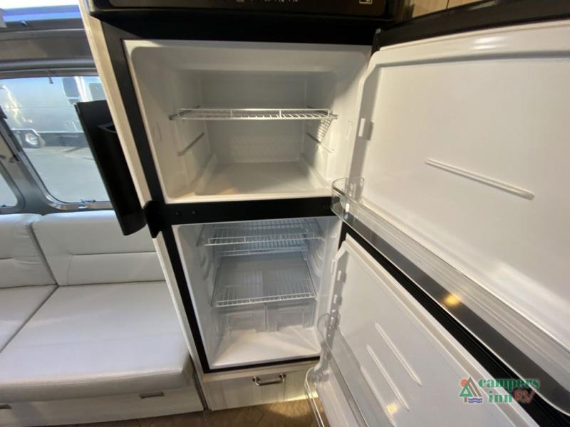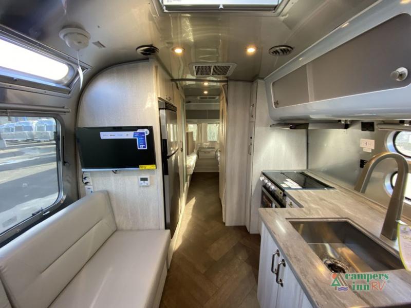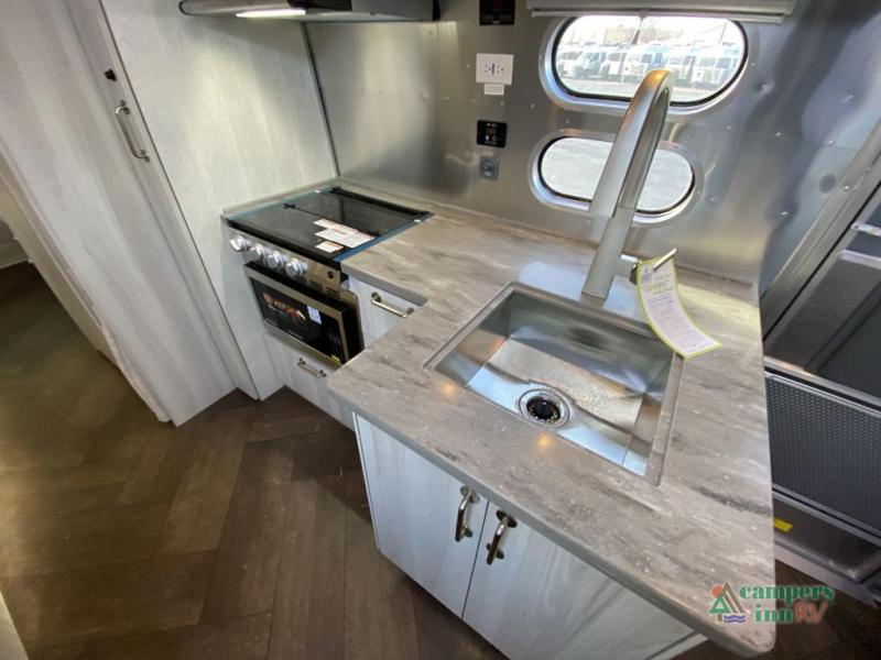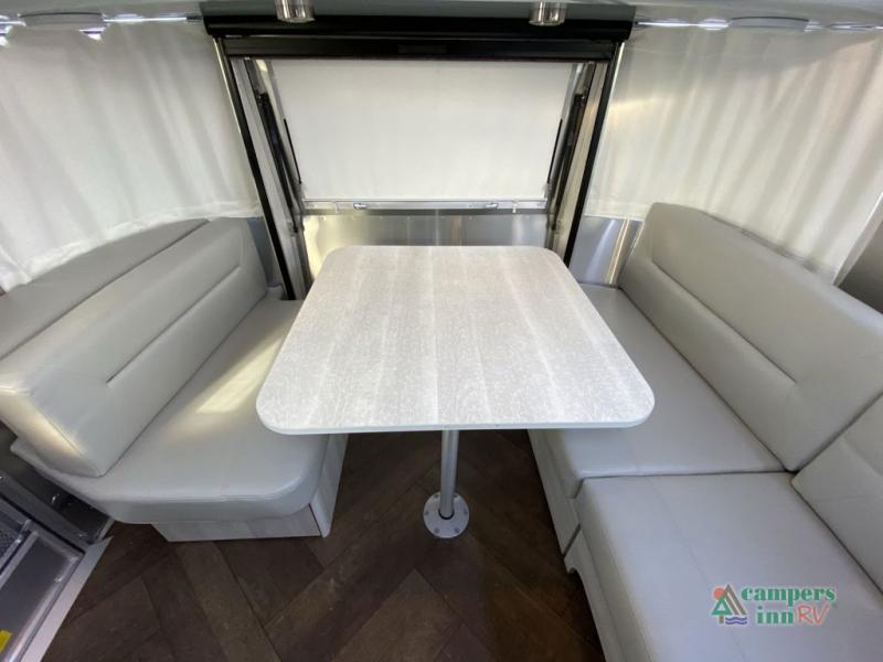 Every time you step foot into the Airstream International travel trailer, you will feel as if you are breathing in a breath of fresh air! The fresh coastal décor was inspired by the waterfront, and the stylish interior delivers a relaxing environment and comfortable luxury. The panoramic windows increase the amount of natural sunlight that streams through to the interior, but they also have blackout shades that you can close whenever you need a darkened room. The beautiful handcrafted marine-grade Lite-Ply laminated cabinetry is an attractive base for the overhead storage lockers that have sliding doors and LED lighting. The dimmable interior LED lighting will create the perfect amount of illumination for you as you spend time indoors. The exterior has excellent features as well with its enclosed aluminum insulated heated underbelly, unique front door key with heavy-duty deadbolt, optional solar package, solar front window protection, and exterior shower with hot and cold water.