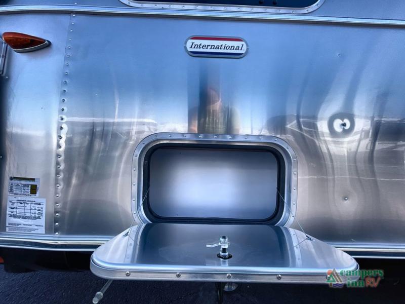 Every time you step foot into the Airstream International travel trailer, you will feel as if you are breathing in a breath of fresh air! The fresh coastal décor was inspired by the waterfront, and the stylish interior delivers a relaxing environment and comfortable luxury. The panoramic windows increase the amount of natural sunlight that streams through to the interior, but they also have blackout shades that you can close whenever you need a darkened room. The beautiful handcrafted marine-grade Lite-Ply laminated cabinetry is an attractive base for the overhead storage lockers that have sliding doors and LED lighting. The dimmable interior LED lighting will create the perfect amount of illumination for you as you spend time indoors. The exterior has excellent features as well with its enclosed aluminum insulated heated underbelly, unique front door key with heavy-duty deadbolt, optional solar package, solar front window protection, and exterior shower with hot and cold water.