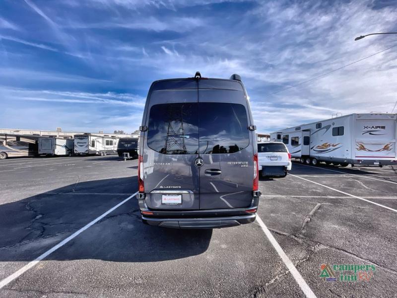 If you're looking to travel the countryside, head to the beach house or catch a tailgate then you need to get one of these Airstream RV Interstate 24GL Class B diesel motorhomes! With best-in-class features included as standard, you can be sure you have the very best in safety, performance, interior design, comfort, and efficiency. The foundation starts with a Mercedes-Benz Sprinter 3500 extended chassis and a Mercedes-Benz turbo diesel engine that will power you to every destination. The premium air ride suspension not only adjusts itself to bumps in the road, but also changes in elevation and wind resistance for a smoother ride in different conditions. Entertain in style with Corian countertops and Ultraleather seating, and stay entertained with two LED widescreen Smart HDTVs. And don't overlook the optional E1 Package, an enhanced energy system with a single-fuel-source heating and hot water system that will allow you to go off-grid when the adventure calls for it!