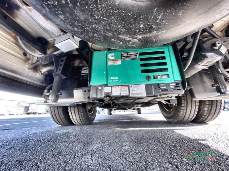 This motorhome is ready to take everyone to each destination in comfort and style! You can even stay overnight without booking a hotel room and stay squeaky clean with a wet bath that has a one-piece shower, a riveted aluminum porthole door, a toilet, a sink with an articulated mirror, a towel rack, and even a retractable clothesline. Keep your bellies full with the two-burner cooktop, the drawer-style microwave and a 3.1 cu. ft. refrigerator under the Corian counter, plus there is a flip-up countertop to make it easier for meal prepping. The rear power sofa is not only great for sitting on during the day, but also for sleeping on at night once it is folded down to turn the entire rear of the unit into a singular sleeping space. In between the two captain's chairs and the two side seats is a removable table to play games and eat meals!