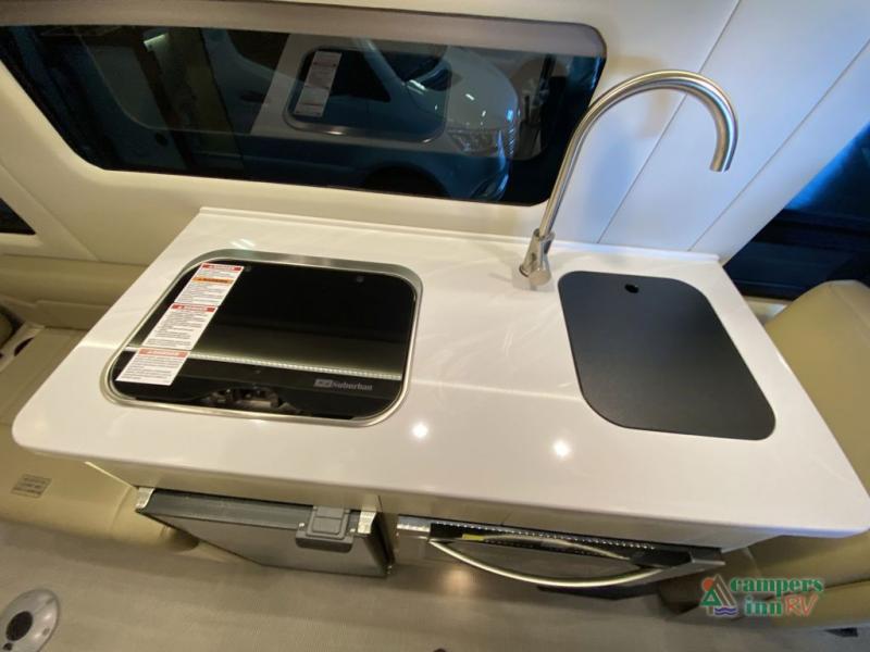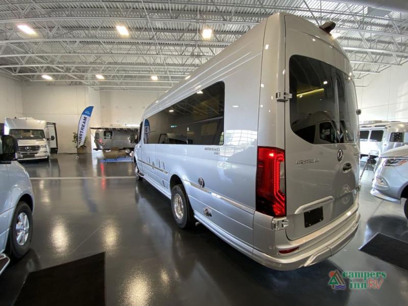 If you're looking to travel the countryside, head to the beach house or catch a tailgate then you need to get one of these Airstream RV Interstate 24GL Class B diesel motorhomes! With best-in-class features included as standard, you can be sure you have the very best in safety, performance, interior design, comfort, and efficiency. The foundation starts with a Mercedes-Benz Sprinter 3500 extended chassis and a Mercedes-Benz turbo diesel engine that will power you to every destination. The premium air ride suspension not only adjusts itself to bumps in the road, but also changes in elevation and wind resistance for a smoother ride in different conditions. Entertain in style with Corian countertops and Ultraleather seating, and stay entertained with two LED widescreen Smart HDTVs. And don't overlook the optional E1 Package, an enhanced energy system with a single-fuel-source heating and hot water system that will allow you to go off-grid when the adventure calls for it!