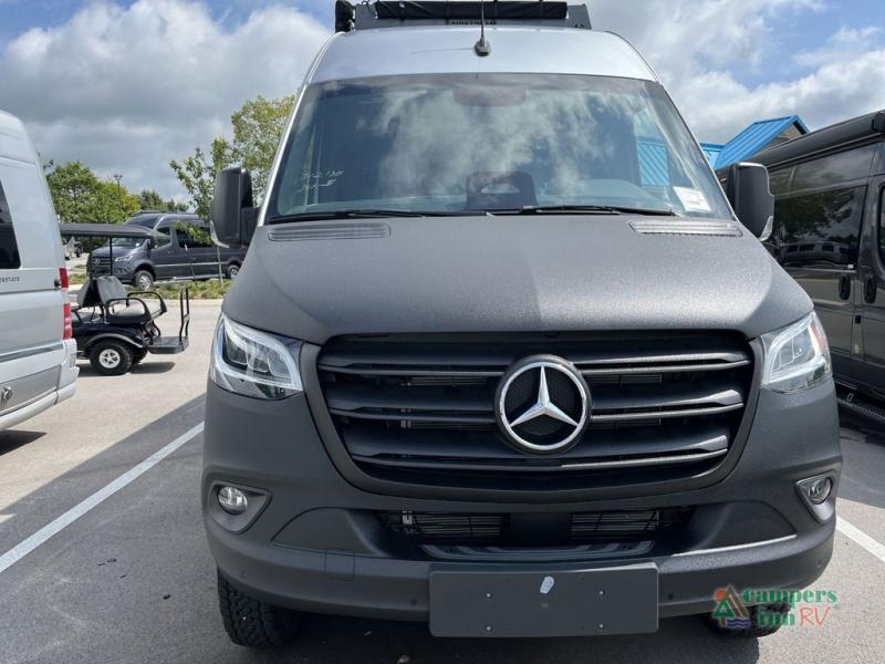 For the true adventurer, there isn't much that quite compares to the Airstream Interstate 24X Class B diesel motorhome! This brand is exceptional for off-grid tours because of its performance capabilities, air ride suspension, and all-season all-terrain rugged tires. There is also a black roof rack, exterior gear wash station, and an off-road front HD LED light bar. The cockpit has an MBUX infotainment system and premium digital media receiver with Bluetooth connectivity for the tech enthusiast, and you can also add an optional front bed system to the cockpit if you need another sleeping space. You'll also love the adjustable LED lighting, Ultraleather seating, solid surface galley countertop with edge band lighting, and many more interior comforts!