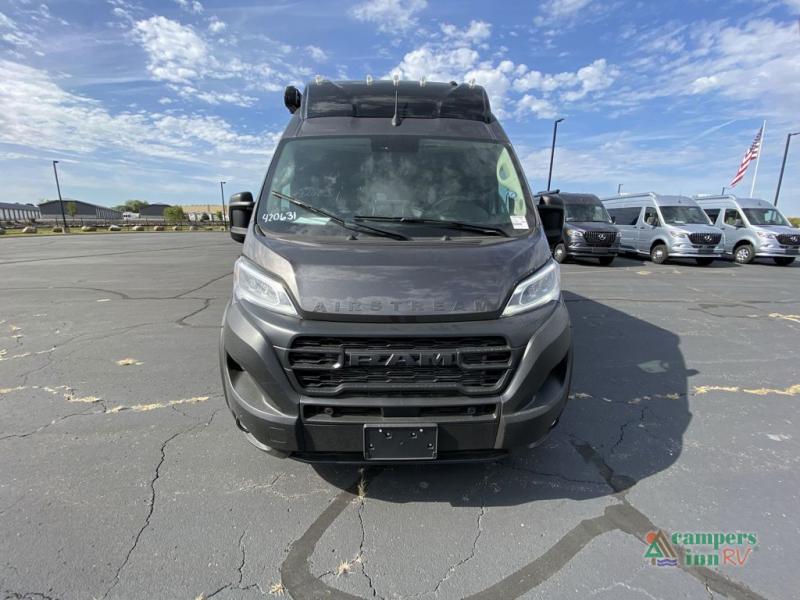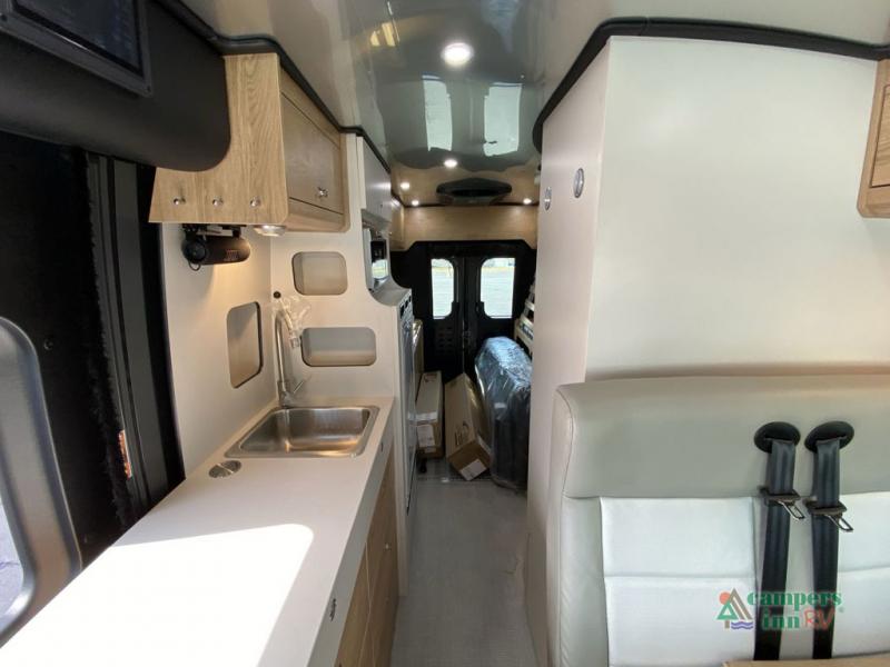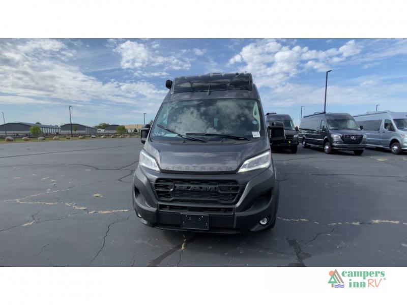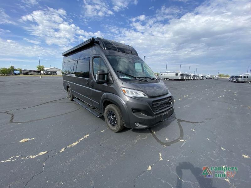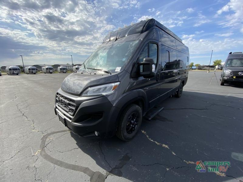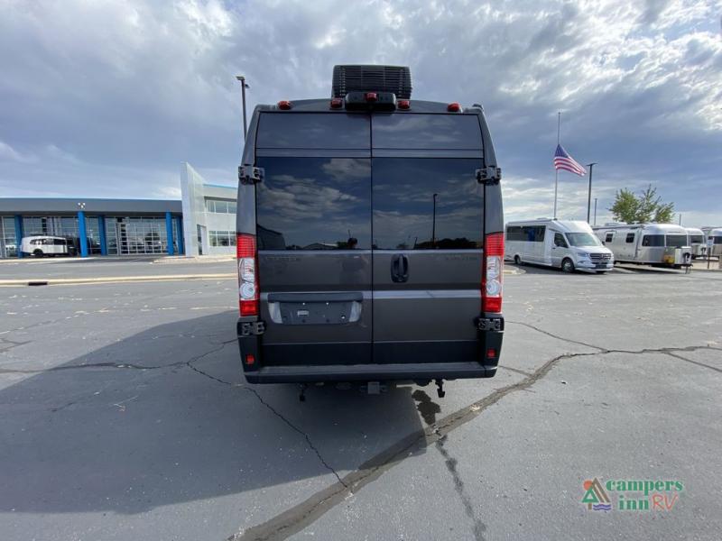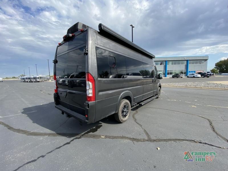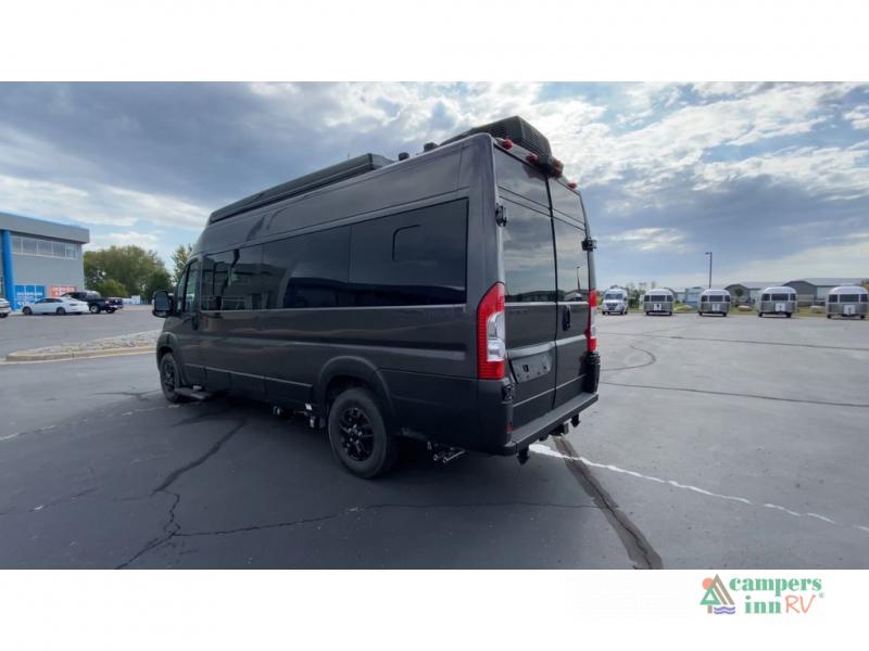 The Airstream Rangeline offers complete comfort and flexibility with great living spaces, flexible storage throughout, and all the amenities you need to enjoy travel. Its sleek design with painted grille, two interior color choices with Warm River Oak cabinets and drawers, and gray laminate countertops allows you to travel in style. The Ram ProMaster 3500 chassis offers front-wheel drive and 276 horsepower, with an efficient gas-powered heat and hot water system plus SumoSprings and SuperSprings for an overall better driving experience. Rear storage includes MOLLE panels on the rear doors to hang all your gear, and space under the bed for even more cargo. The optional pop-top roof has three screen windows and another bed, expanding sleeping capacity to four people.