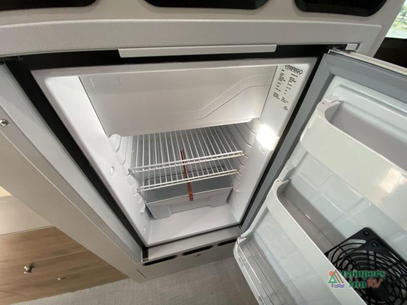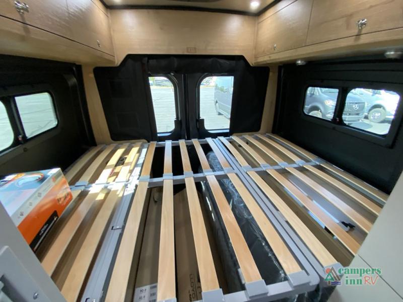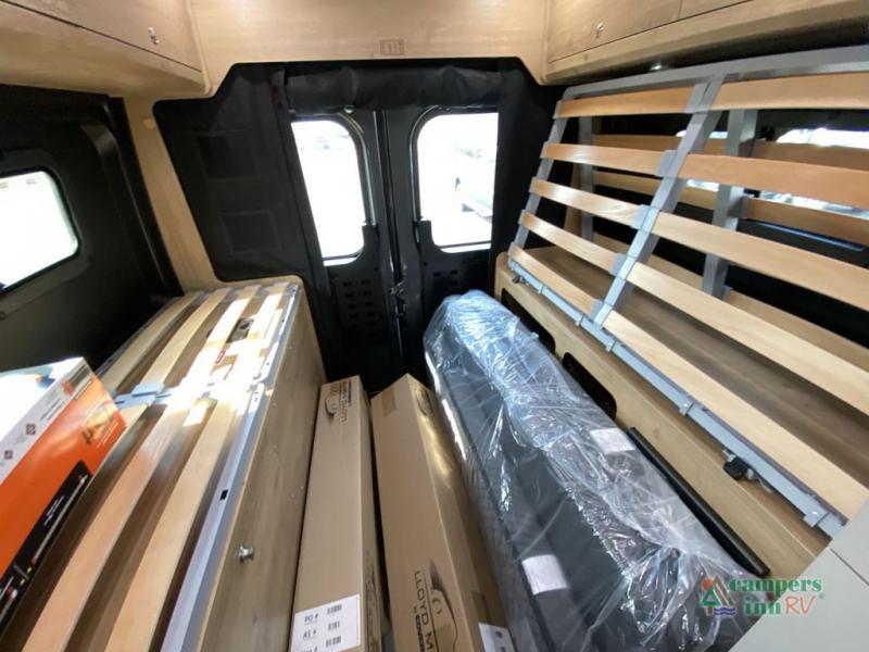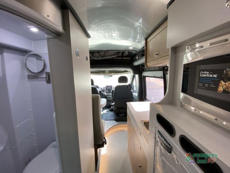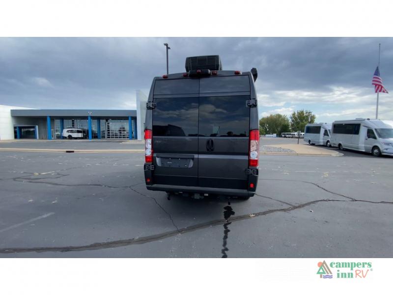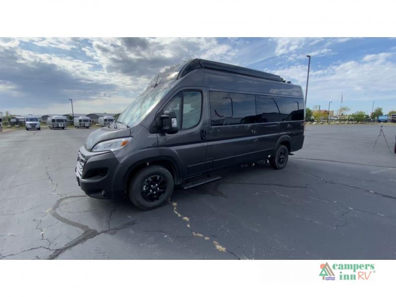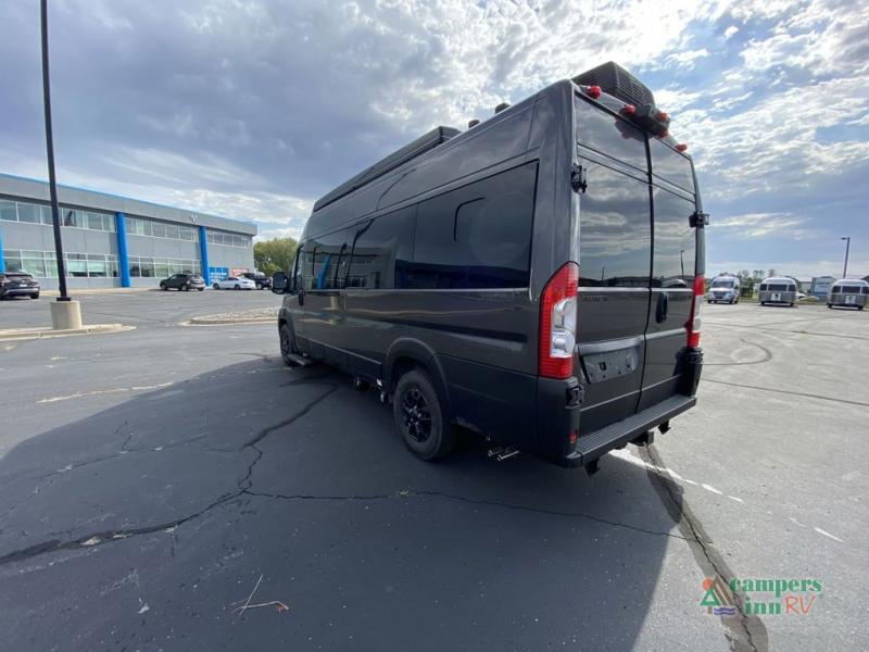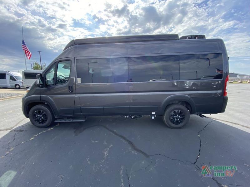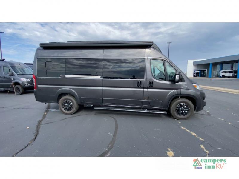 The Airstream Rangeline offers complete comfort and flexibility with great living spaces, flexible storage throughout, and all the amenities you need to enjoy travel. Its sleek design with painted grille, two interior color choices with Warm River Oak cabinets and drawers, and gray laminate countertops allows you to travel in style. The Ram ProMaster 3500 chassis offers front-wheel drive and 276 horsepower, with an efficient gas-powered heat and hot water system plus SumoSprings and SuperSprings for an overall better driving experience. Rear storage includes MOLLE panels on the rear doors to hang all your gear, and space under the bed for even more cargo. The optional pop-top roof has three screen windows and another bed, expanding sleeping capacity to four people.