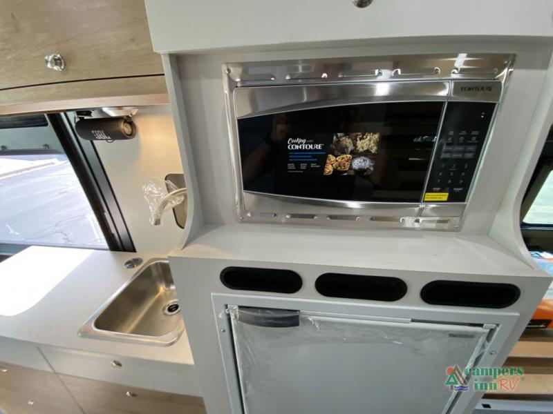 A great couples coach that would allow for easy travel to weekend sporting events, week long vacationing, or even picking up groceries across town. You will have everything at your fingertips with a flex bed system in back that can easily fold out to create a full-sized bed. The kitchen amenities make creating meals and snacks on the go easy and the wet bath is a convenience that you will also appreciate.  With the swivel driver and passenger seats up front and the flex table system with bench seating you can easily enjoy conversation or a meal with friends. The table swings out and can extend for extra space or it can be lifted out and removed completely to open up the space.