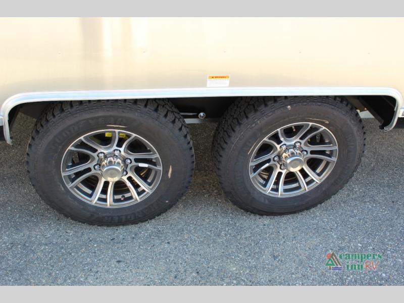 The Trade Wind is Airstream's most powerful travel trailer in its lineup and it's easy to see why! There are roof-mounted solar panels, a full-inverted electrical system, plus a massive internal battery pack. A recirculating water heater helps save water, and an optional composting toilet can be added for even more conservation. You will love how easy it will be to maneuver roads thanks to the 3" suspension lift kit and rugged Goodyear Wrangler Workhorse tires, plus there is a rear view monitoring system to make parking easier than ever. All the comforts of home are included, like a functional kitchen, onboard bathroom, and plenty of storage for belongings and camp gear. The Smart TV with Bluetooth will provide entertainment on those rainy days, or you can just enjoy the view with panoramic windows!