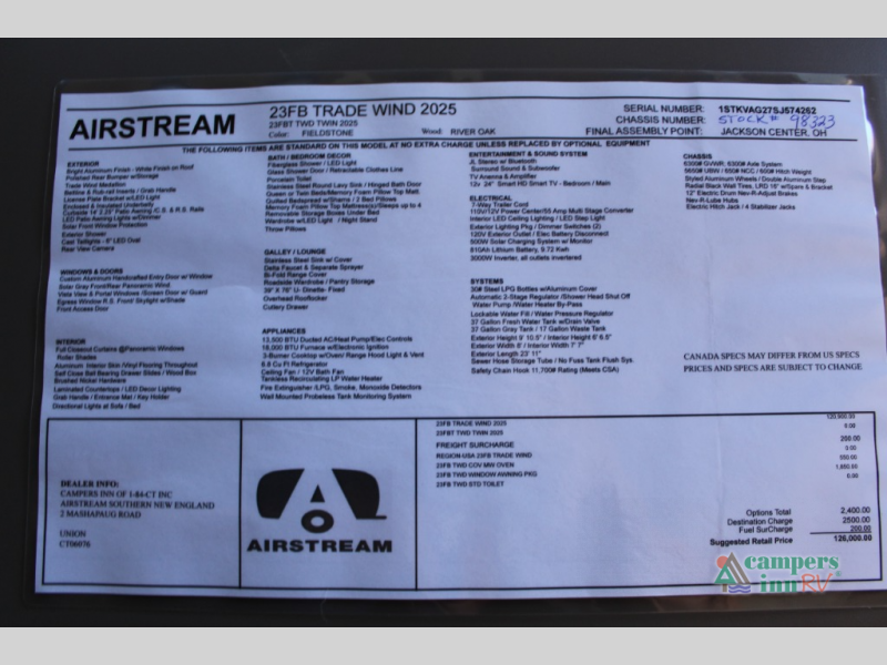 Airstream Trade Wind travel trailer 23FBT highlights: