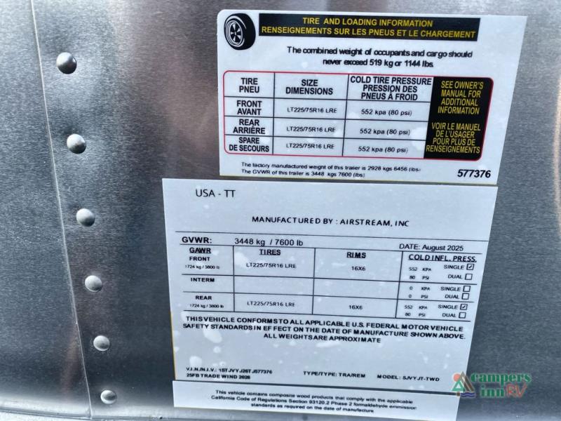 The 2025 Airstream Trade Wind 25FB Twin is one of the most capable, power-packed travel trailers Airstream has ever built. Designed for travelers who want freedom, flexibility, and first-class comfort everywhere they go, the Trade Wind 25FB Twin delivers unmatched off-grid performance, exceptional interior space, and the iconic craftsmanship that sets Airstream apart.