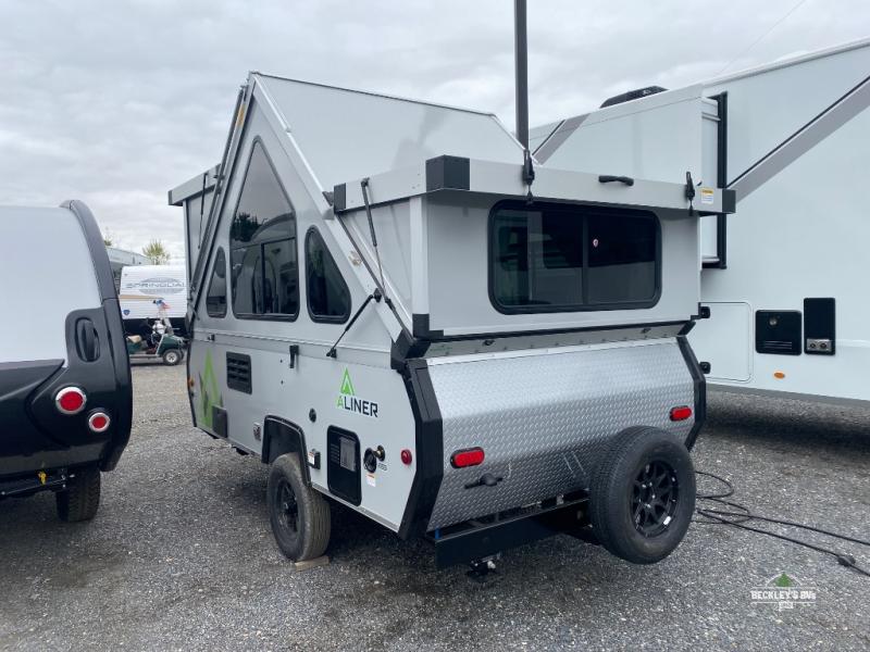 With any ALiner Classic A-frame folding pop-up camper you will find Azdel lightweight, composite interior wall and ceiling panels for added durability and strength. The additional corner windows provide panoramic views, and the hardwood cabinet doors will give these campers a more at-home feel. Four stabilizer jacks come standard, along with dual propane tanks, an exterior outlet, and an outside shower. It's no wonder these campers are named classic! Choose your model and start camping today!