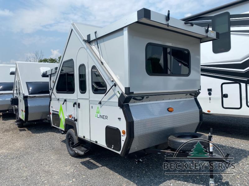 With any ALiner Classic A-frame folding pop-up camper you will find Azdel lightweight, composite interior wall and ceiling panels for added durability and strength. The additional corner windows provide panoramic views, and the hardwood cabinet doors will give these campers a more at-home feel. Four stabilizer jacks come standard, along with an LP connection, an exterior outlet, and an outside shower. It's no wonder these campers are named classic! Choose your model and start camping today!