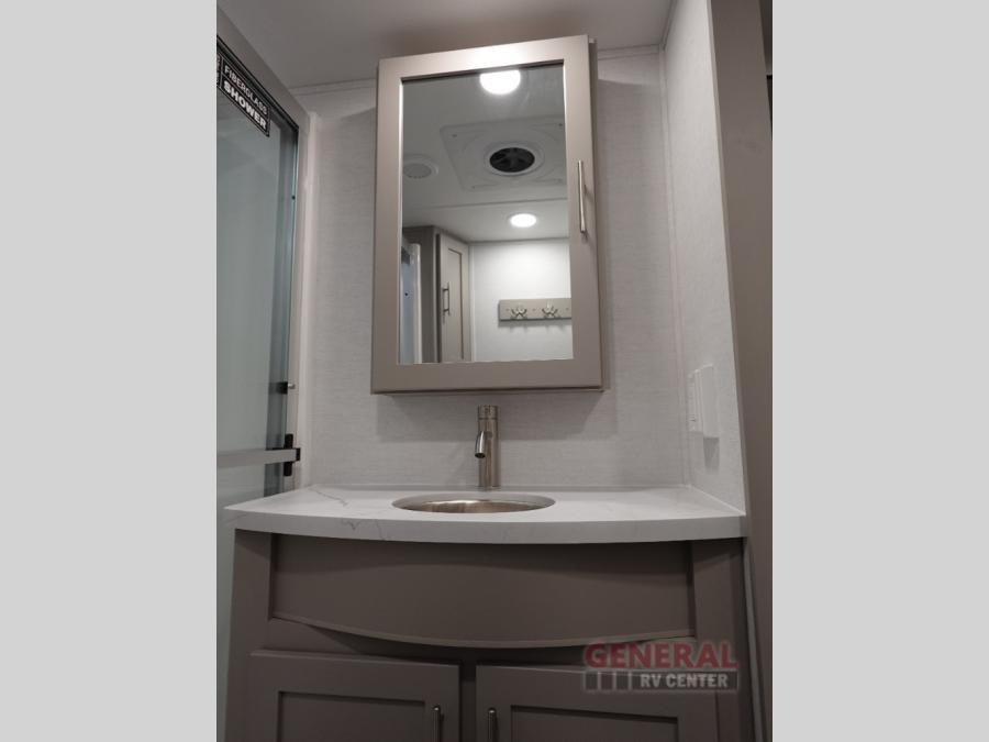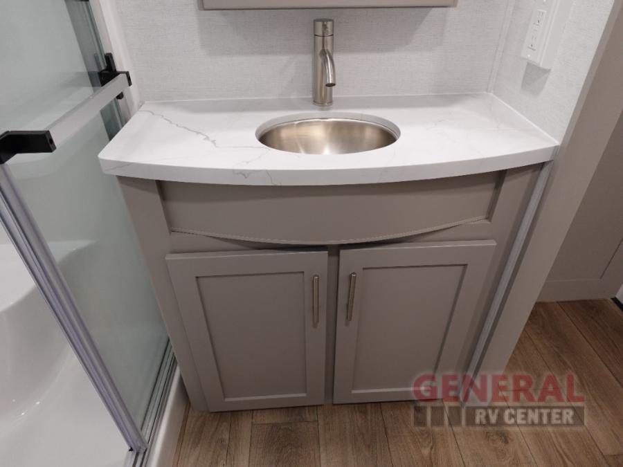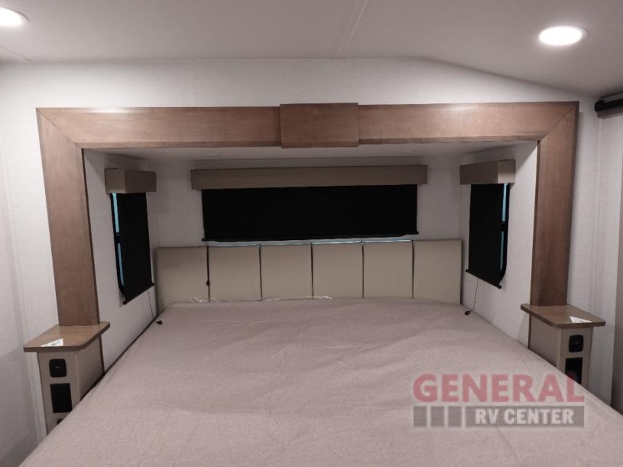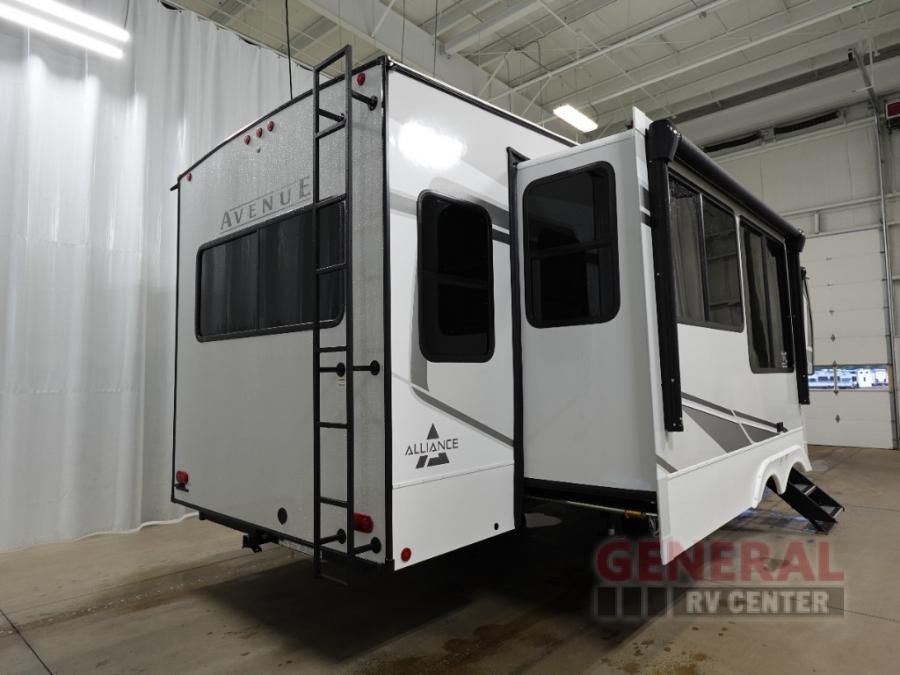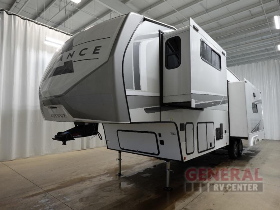 With any Avenue fifth wheel or travel trailer by Alliance RV, you will enjoy more interior space provided by the 8' 5" wide-body construction, and a long list of luxury features. Each is built with Azdel composite sidewalls both inside and out, along with a PVC roof for added strength. There are innovative storage solutions that include hidden storage behind the TV, within end tables and ottomans, and more. Since these units feature no carpet throughout, cleaning will be easier than ever, and there are flush floor slides throughout for seamless living spaces. The Avenue also comes with the OTG Solar Package with a 400 watt solar panel, inverter prep, multiple outlets, and more to keep you charged up!