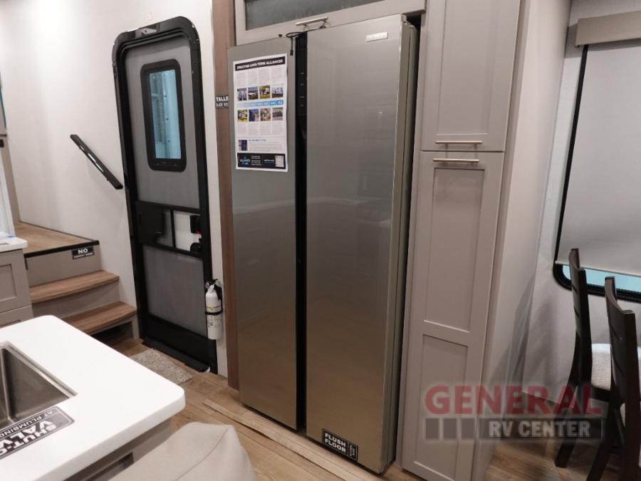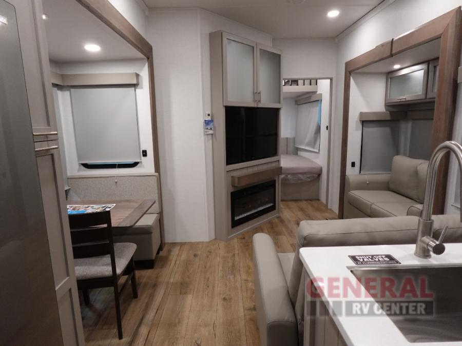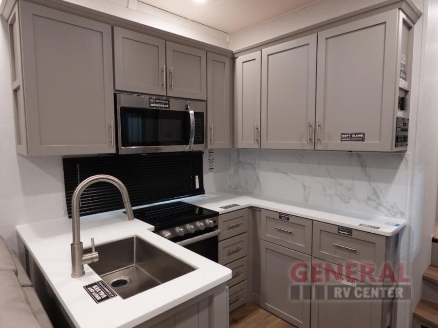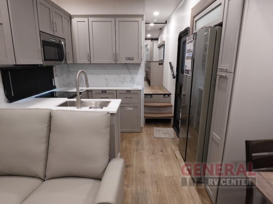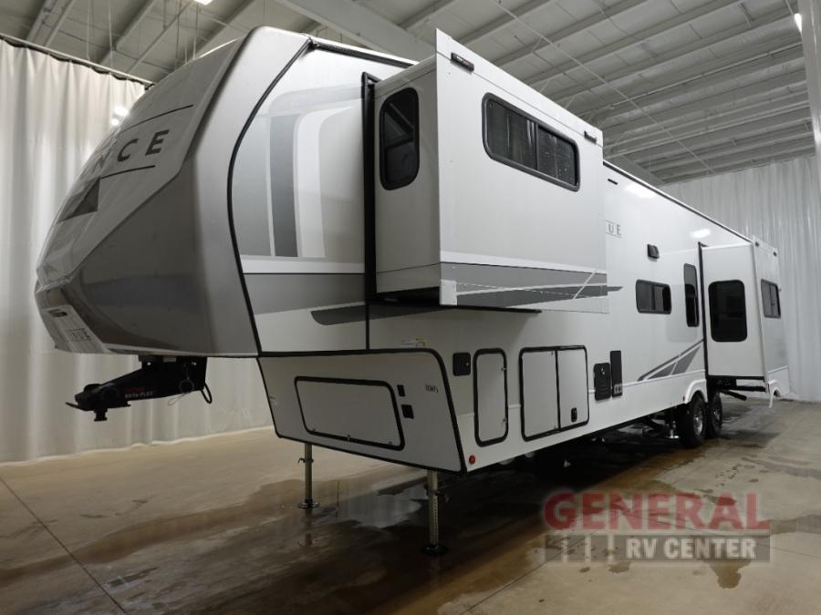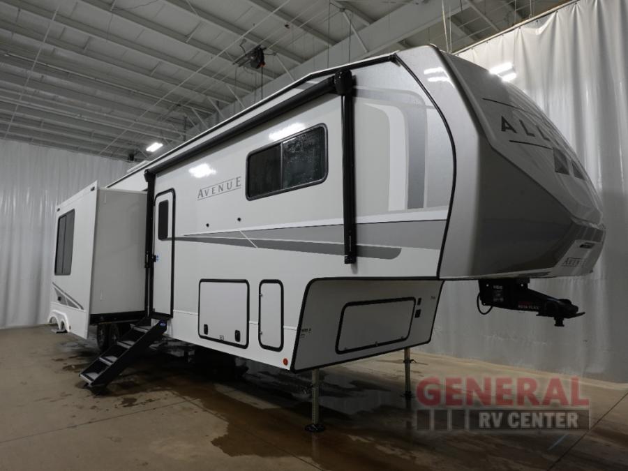 With any Avenue fifth wheel or travel trailer by Alliance RV, you will enjoy more interior space provided by the 8' 5" wide-body construction, and a long list of luxury features. Each is built with Azdel composite sidewalls both inside and out, along with a PVC roof for added strength. There are innovative storage solutions that include hidden storage behind the TV, within end tables and ottomans, and more. Since these units feature no carpet throughout, cleaning will be easier than ever, and there are flush floor slides throughout for seamless living spaces. The Avenue also comes with the OTG Solar Package with a 400 watt solar panel, inverter prep, multiple outlets, and more to keep you charged up!