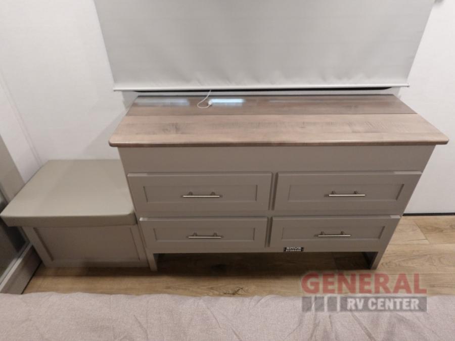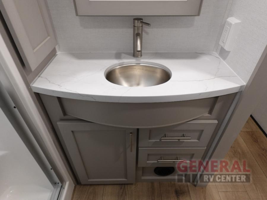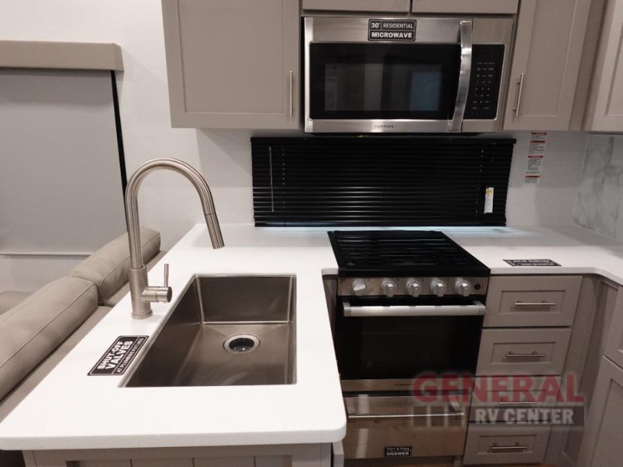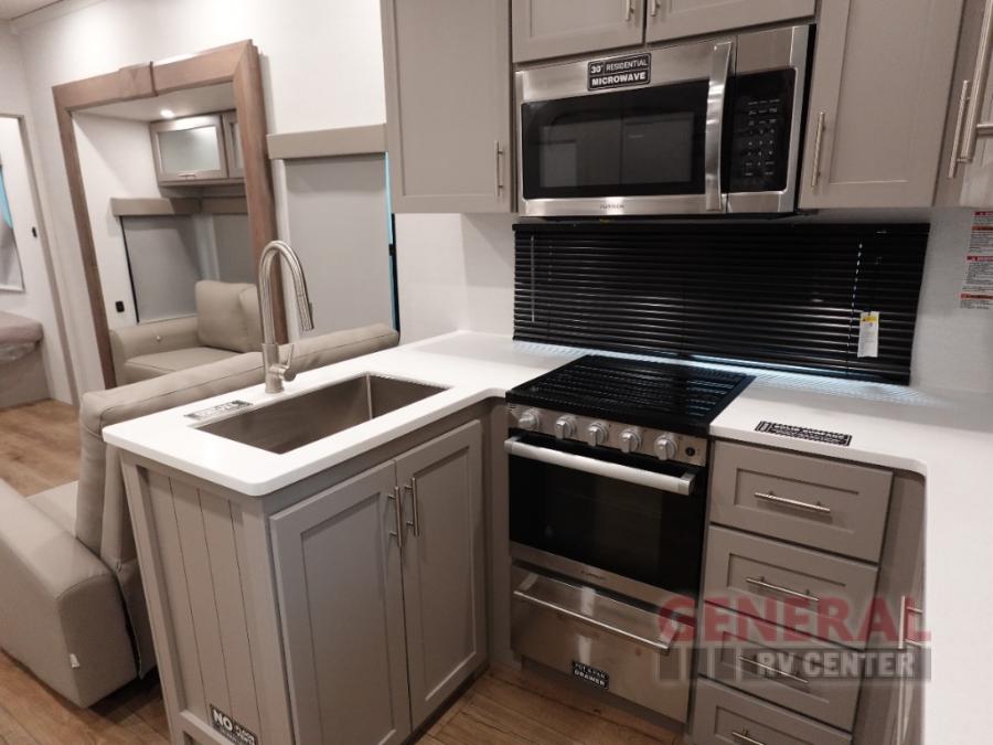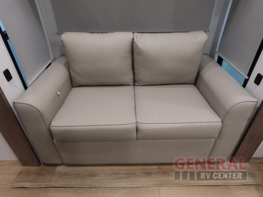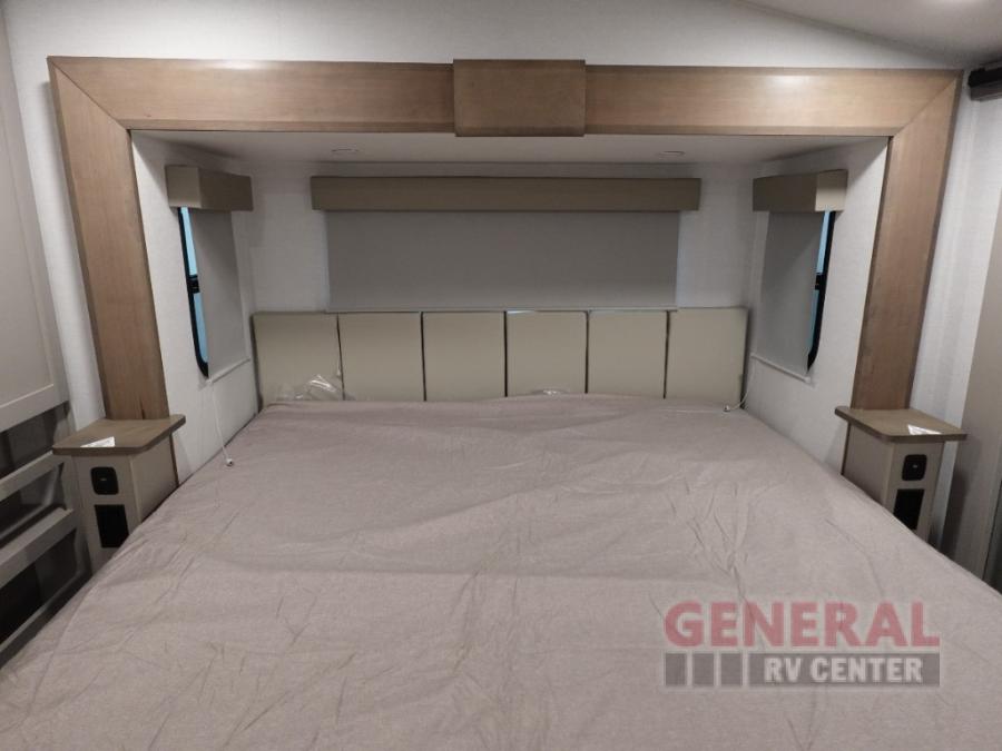 With any Avenue fifth wheel or travel trailer by Alliance RV, you will enjoy more interior space provided by the 8' 5" wide-body construction, and a long list of luxury features. Each is built with Azdel composite sidewalls both inside and out, along with a PVC roof for added strength. There are innovative storage solutions that include hidden storage behind the TV, within end tables and ottomans, and more. Since these units feature no carpet throughout, cleaning will be easier than ever, and there are flush floor slides throughout for seamless living spaces. The Avenue also comes with the OTG Solar Package with a 400 watt solar panel, inverter prep, multiple outlets, and more to keep you charged up!