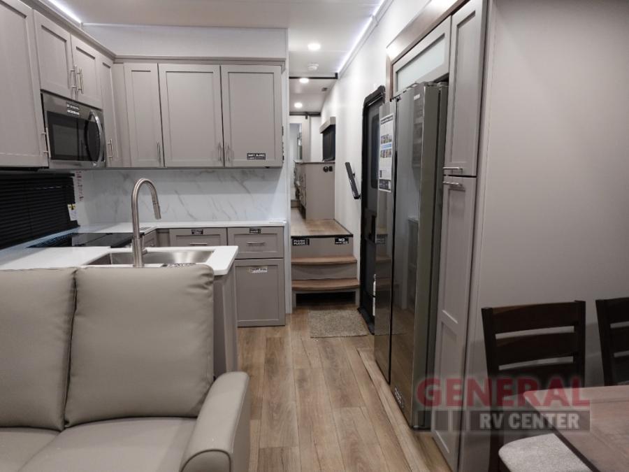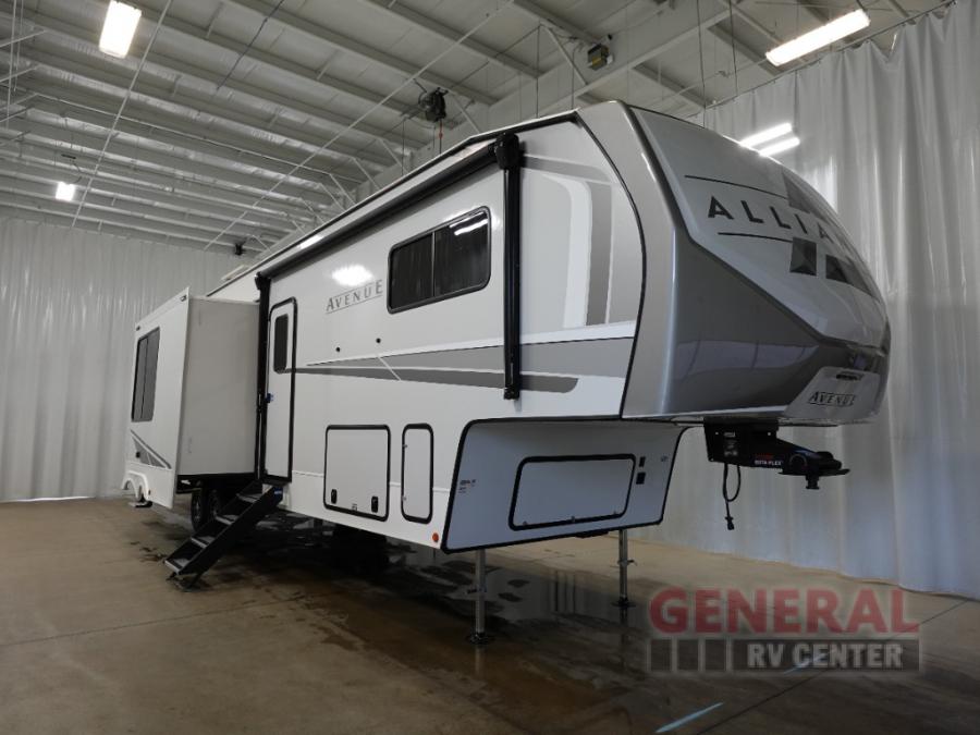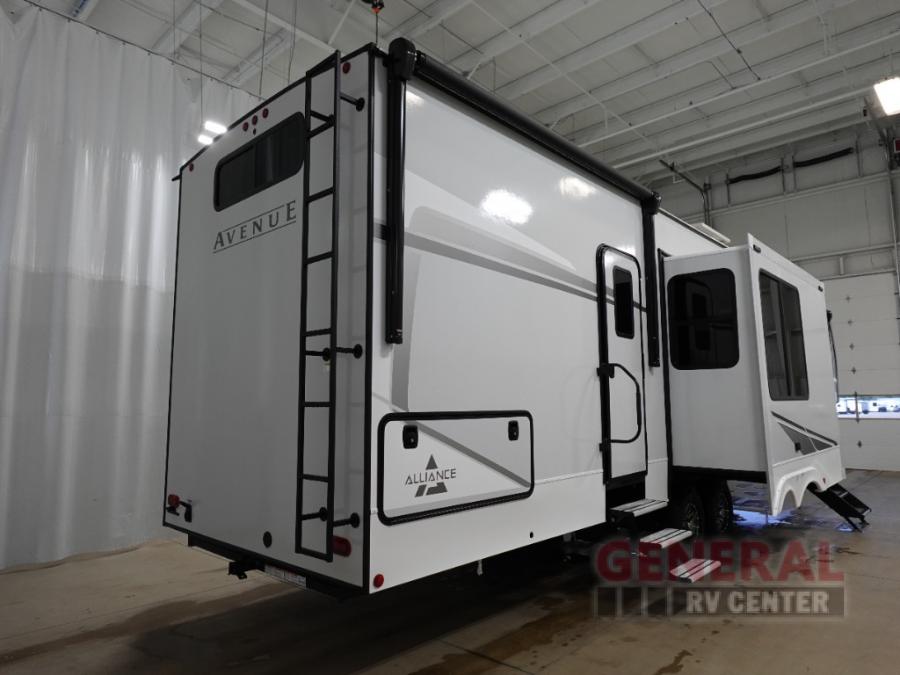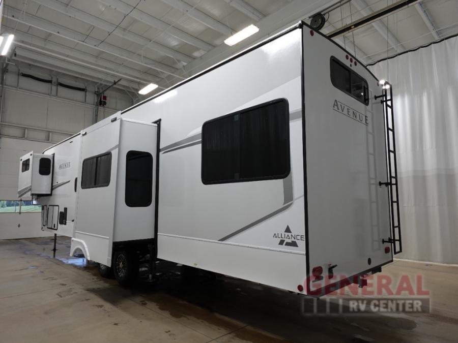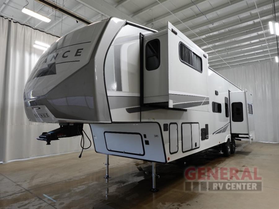With any Avenue fifth wheel or travel trailer by Alliance RV, you will enjoy more interior space provided by the 8' 5" wide-body construction, and a long list of luxury features. Each is built with Azdel composite sidewalls both inside and out, along with a PVC roof for added strength. There are innovative storage solutions that include hidden storage behind the TV, within end tables and ottomans, and more. Since these units feature no carpet throughout, cleaning will be easier than ever, and there are flush floor slides throughout for seamless living spaces. The Avenue also comes with the OTG Solar Package with a 400 watt solar panel, inverter prep, multiple outlets, and more to keep you charged up!