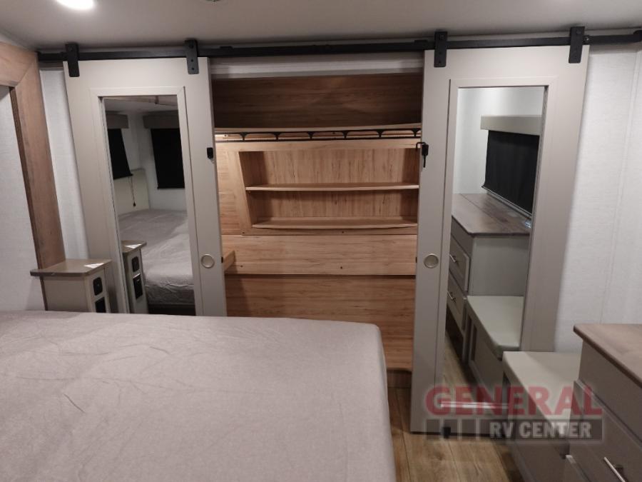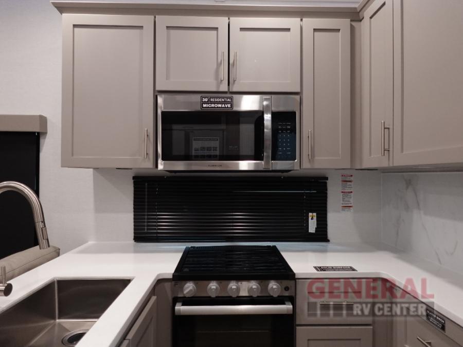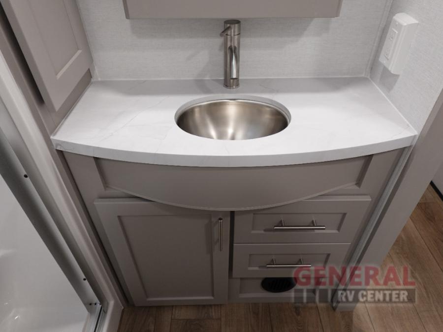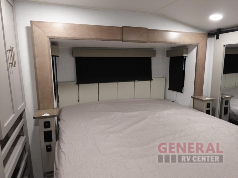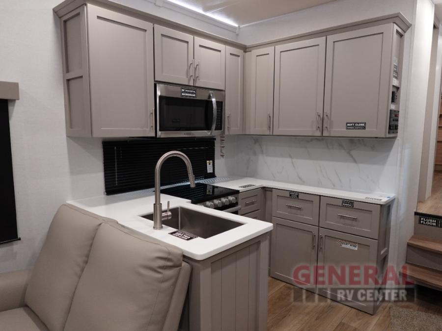 With any Avenue fifth wheel or travel trailer by Alliance RV, you will enjoy more interior space provided by the 8' 5" wide-body construction, and a long list of luxury features. Each is built with Azdel composite sidewalls both inside and out, along with a PVC roof for added strength. There are innovative storage solutions that include hidden storage behind the TV, within end tables and ottomans, and more. Since these units feature no carpet throughout, cleaning will be easier than ever, and there are flush floor slides throughout for seamless living spaces. The Avenue also comes with the OTG Solar Package with a 400 watt solar panel, inverter prep, multiple outlets, and more to keep you charged up!