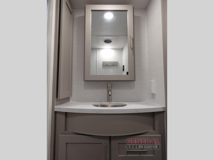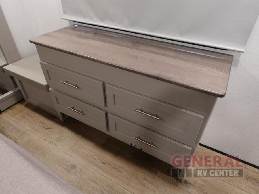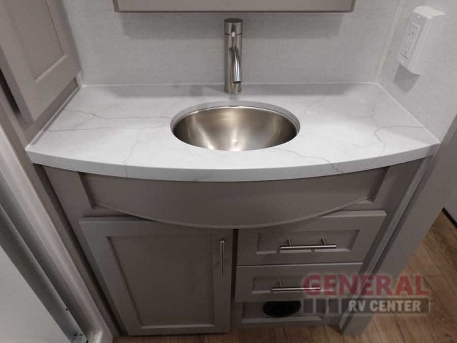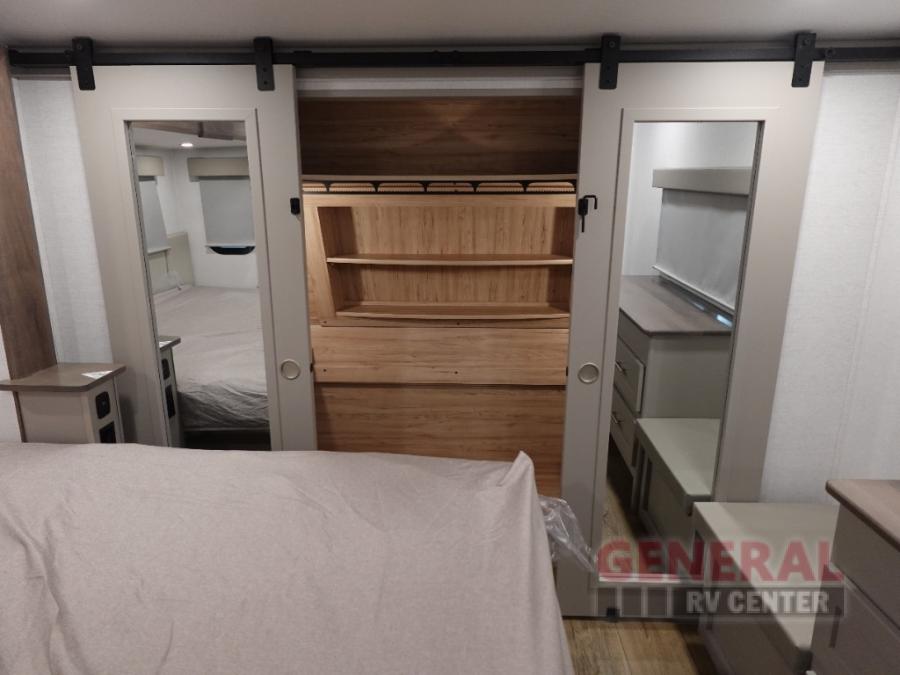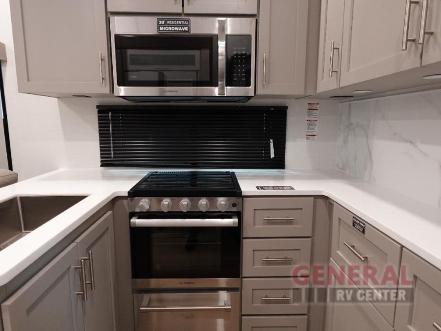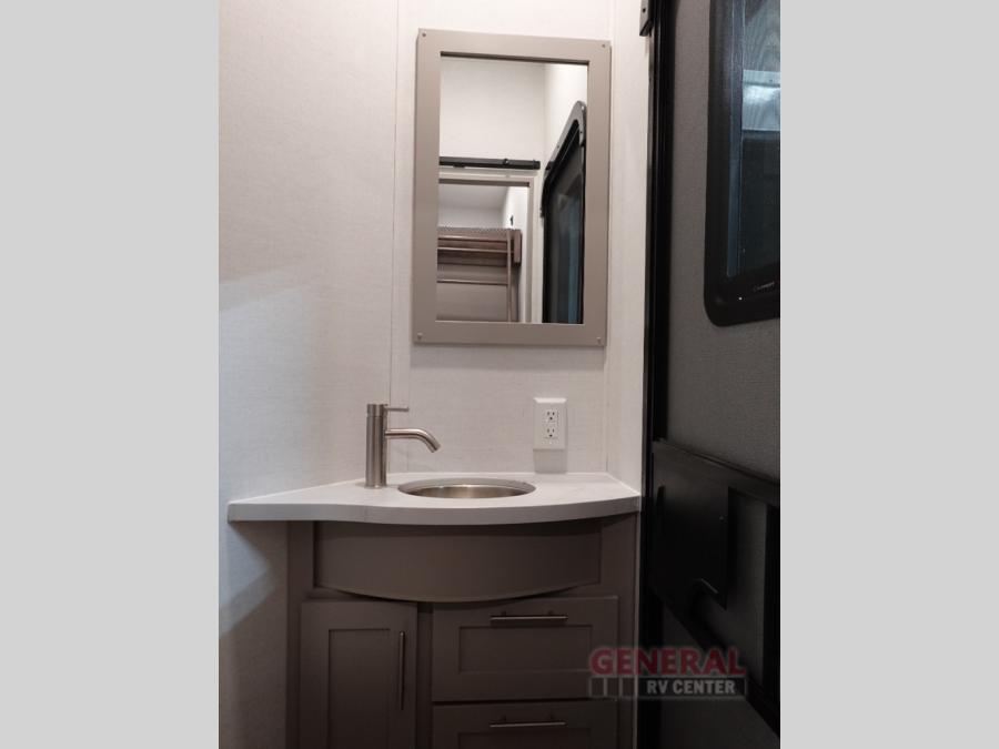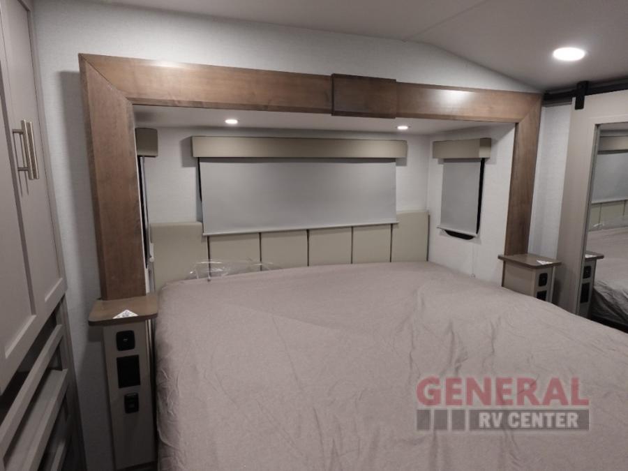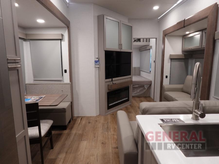 With any Avenue fifth wheel or travel trailer by Alliance RV, you will enjoy more interior space provided by the 8' 5" wide-body construction, and a long list of luxury features. Each is built with Azdel composite sidewalls both inside and out, along with a PVC roof for added strength. There are innovative storage solutions that include hidden storage behind the TV, within end tables and ottomans, and more. Since these units feature no carpet throughout, cleaning will be easier than ever, and there are flush floor slides throughout for seamless living spaces. The Avenue also comes with the OTG Solar Package with a 400 watt solar panel, inverter prep, multiple outlets, and more to keep you charged up!